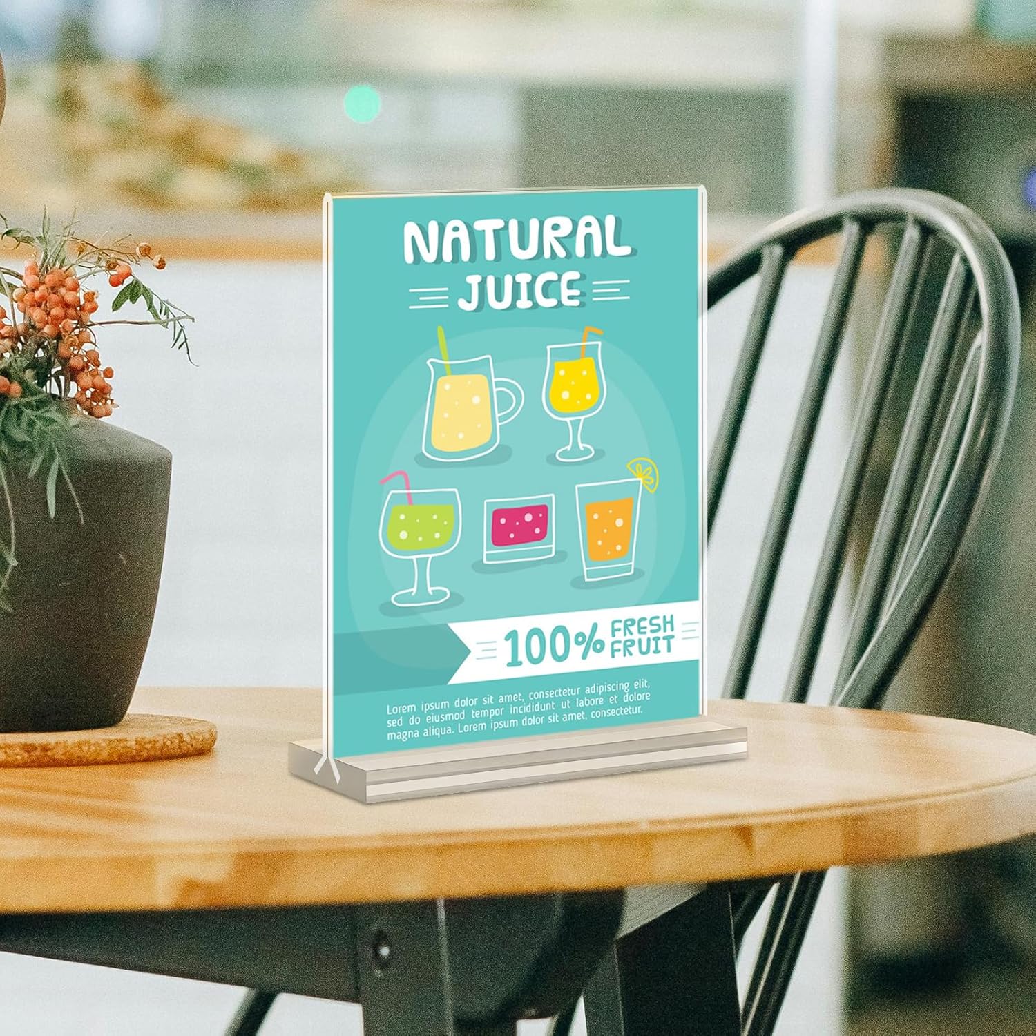 - 【Double Sided Sign Stand】This 15 Pack acrylic sign holder 5x7 is designed with a vertical double sided stand. Compared to the backward-tilted stand, the transparent menu holder adopts a vertical double-sided design, and both sides can display and protect pictures or posters, menus, etc., and are clearly visible.