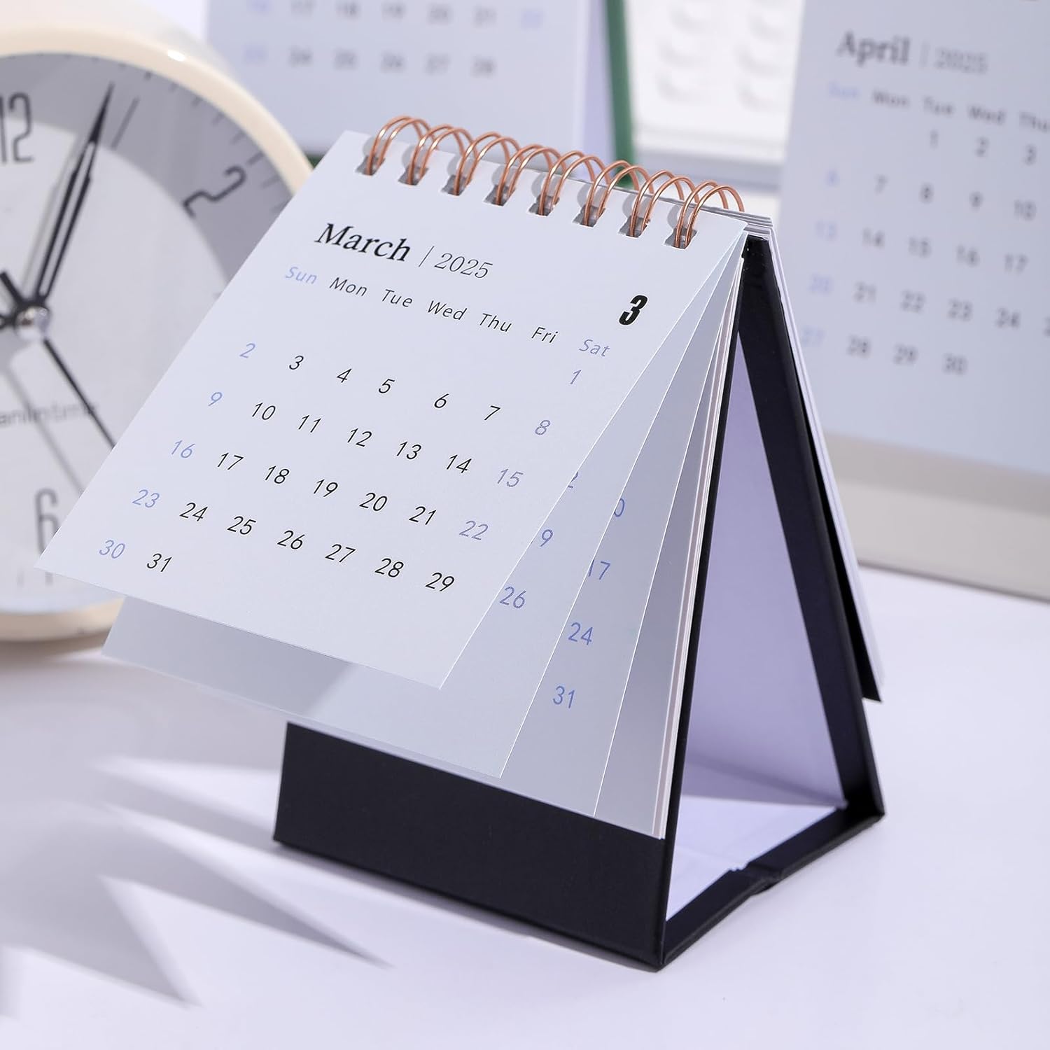 - 🗓️250GSM HIGH QUALITY THICK PAPER - 2025 Mini desk calendar Made of high quality paper material, it's been designed to avoid ink feathering and seepage, lightweight, durable, not easy to break.