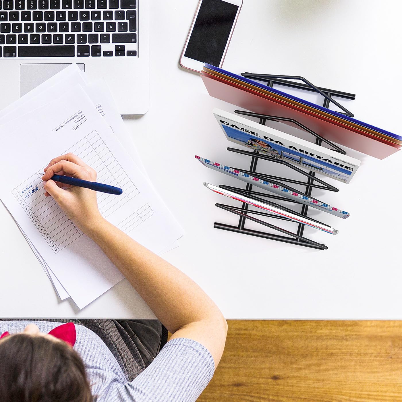 - Large Capacity 7 Slots Magazine Holder:The desktop 7 sections file organizer provide enough space for storage. It will help you to categorize your magazines, books, files, folders, newspapers, mails, books, notebook pad and other items, reducing your desk clutter down to almost zero, keeping your desk neat and tidy.