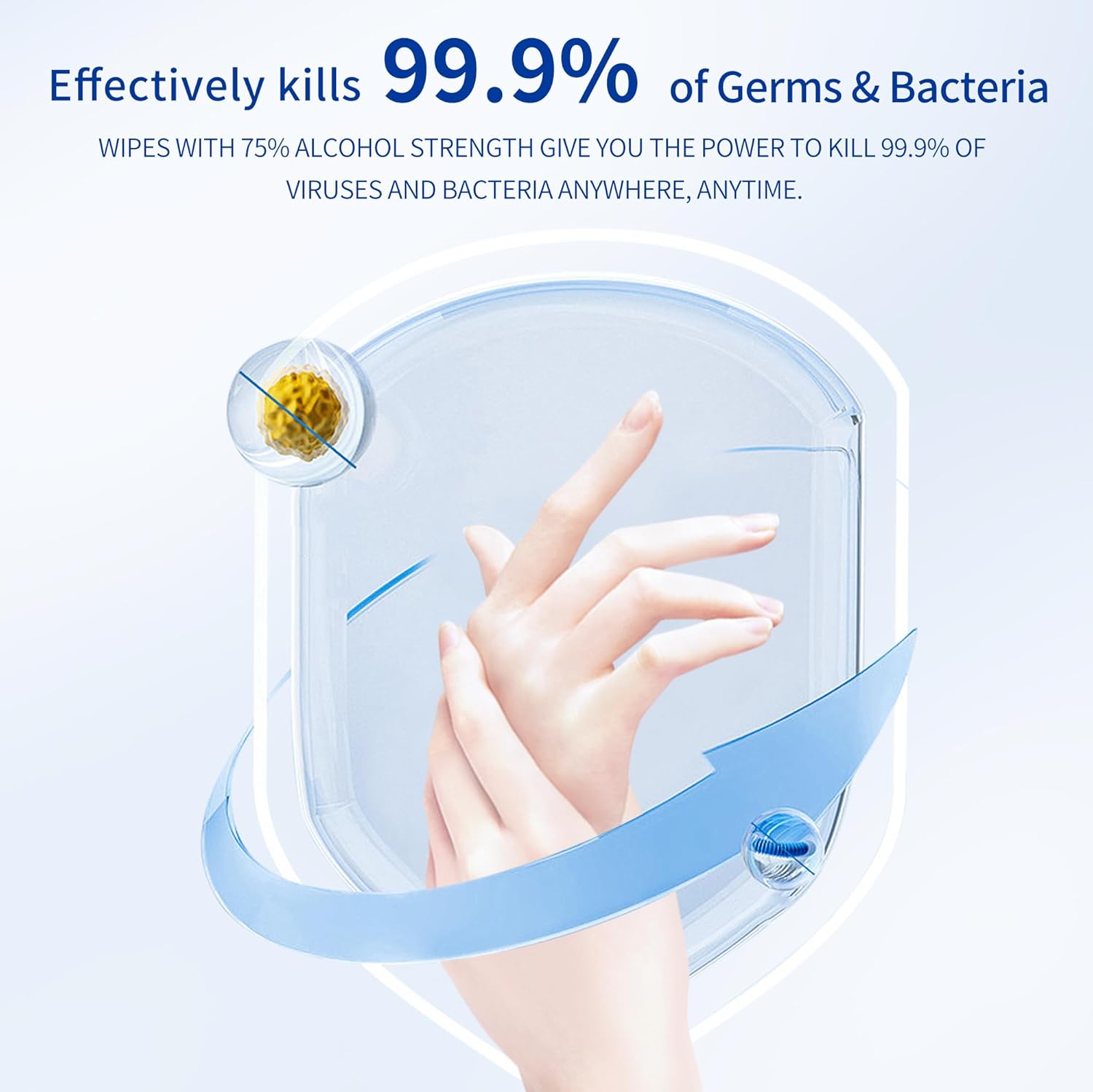 - Our hand sanitizing wipes contain 75% alcohol and can keep hands clean. One quick wipe reduces illness risk, being a daily essential.