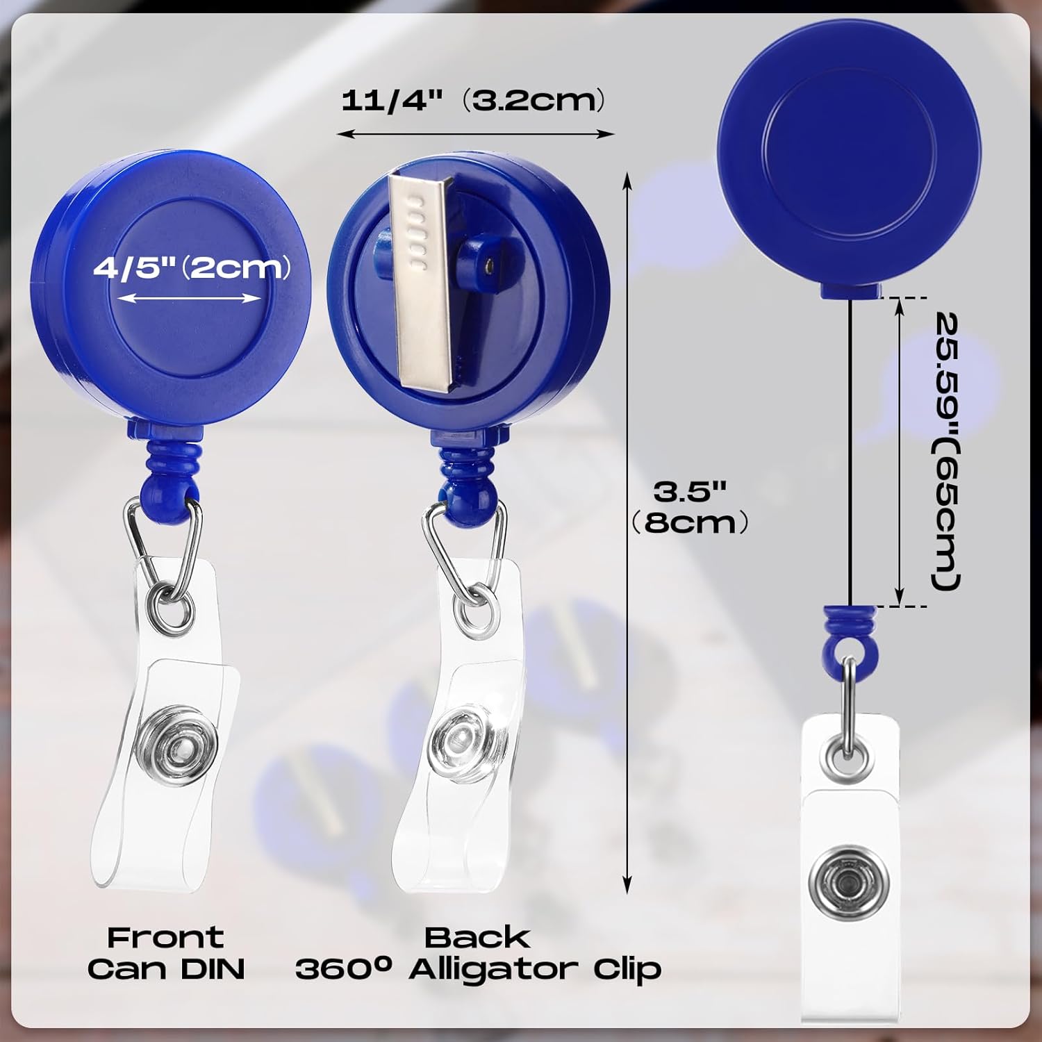 - Size information: each ID badge holder reel measures about 1.26 inch/ 3.2 cm in diameter, proper size for you to use; The retractable cord measures about 23.6 inch/ 60 cm (max.) in length, which is convenient for you to show your ID card without having to take it off