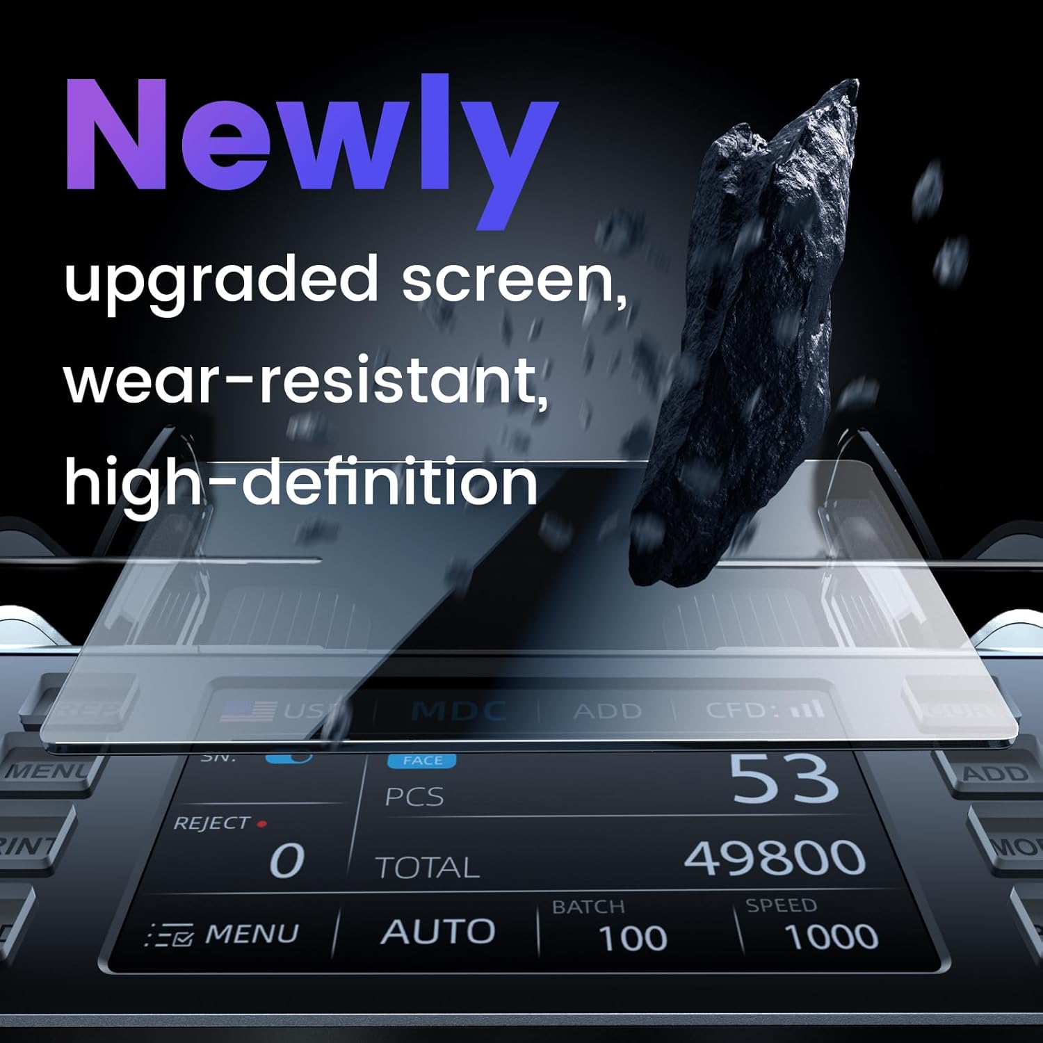 - 【Advanced 2CIS Technology】 With 2 contact image sensors and advanced detection capabilities (UV, MG, IR, NT, and SN recognition), our cash counting machine achieves BANK-LEVEL anti-counterfeiting detection.
