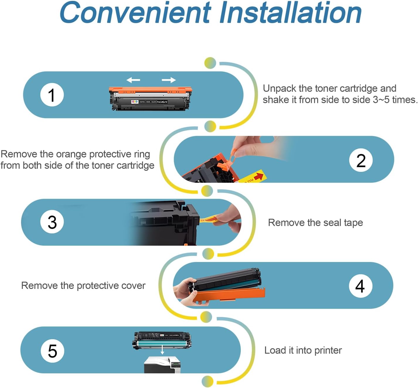 - Ease Installation & Wide Application: the 4 pack 650a toner cartridge is convinent & fast installation, which can be applied to office, school, home, bank, etc
