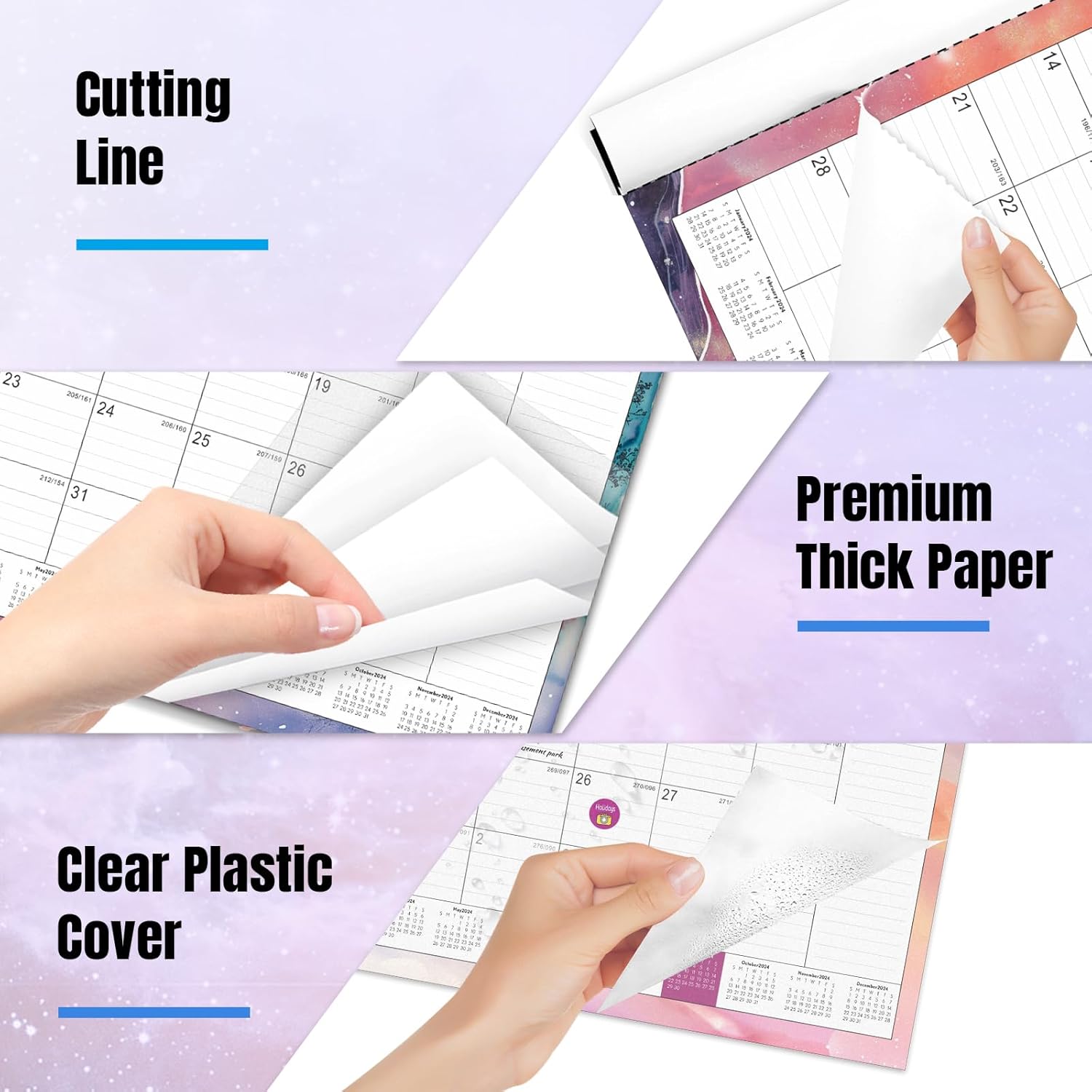 - ✨【Modern Colorful Waterink Design】This 18 months academic desk calendar for 2025-2026 waterink design is both a practical time management tool and a beautiful addition to your desk.12 starry sky art patterns bring freshness to your campus,workplace and home. Best gift for home,office,and school.