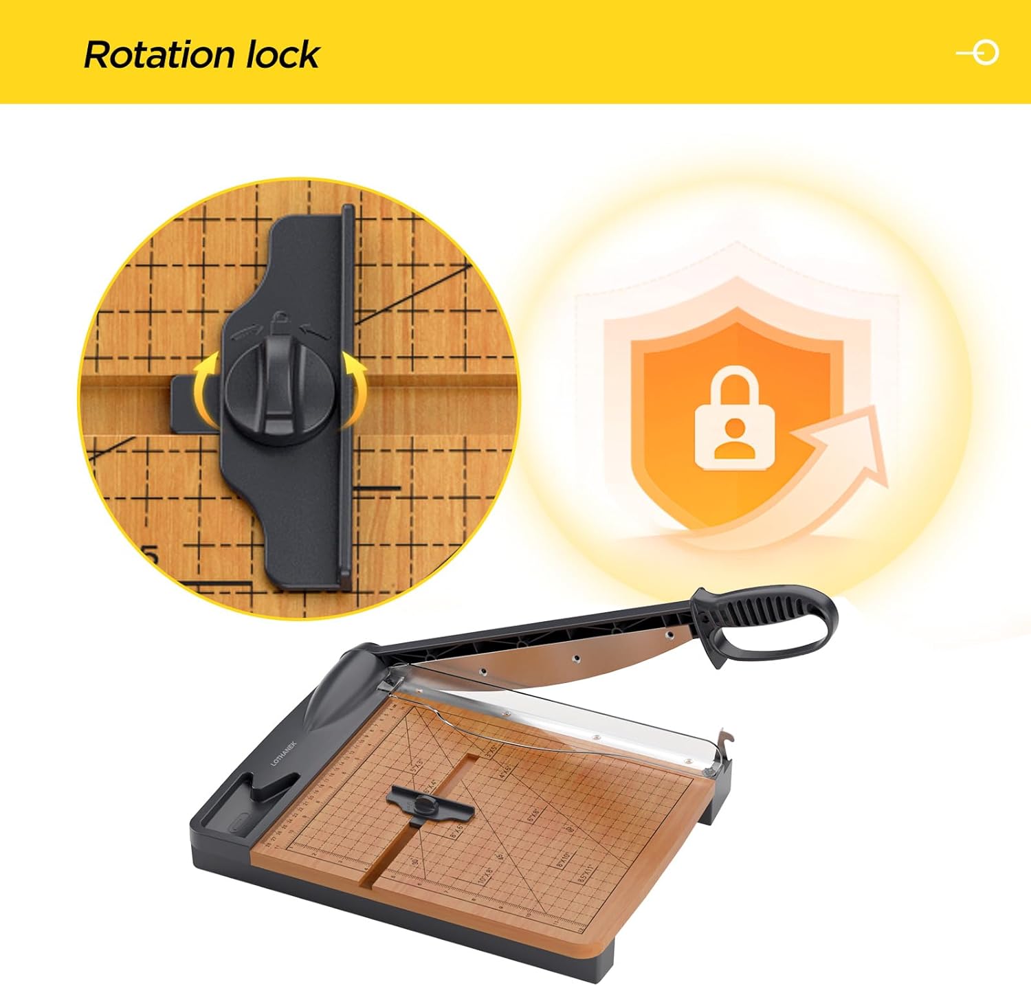 12'' Wood Guillotine Paper Cutter, Heavy Duty Wood Base Paper Trimmer with 32 Sheets Capacity Paper Cutting Board for Classroom, Crafting, Cardstock, Art Projects