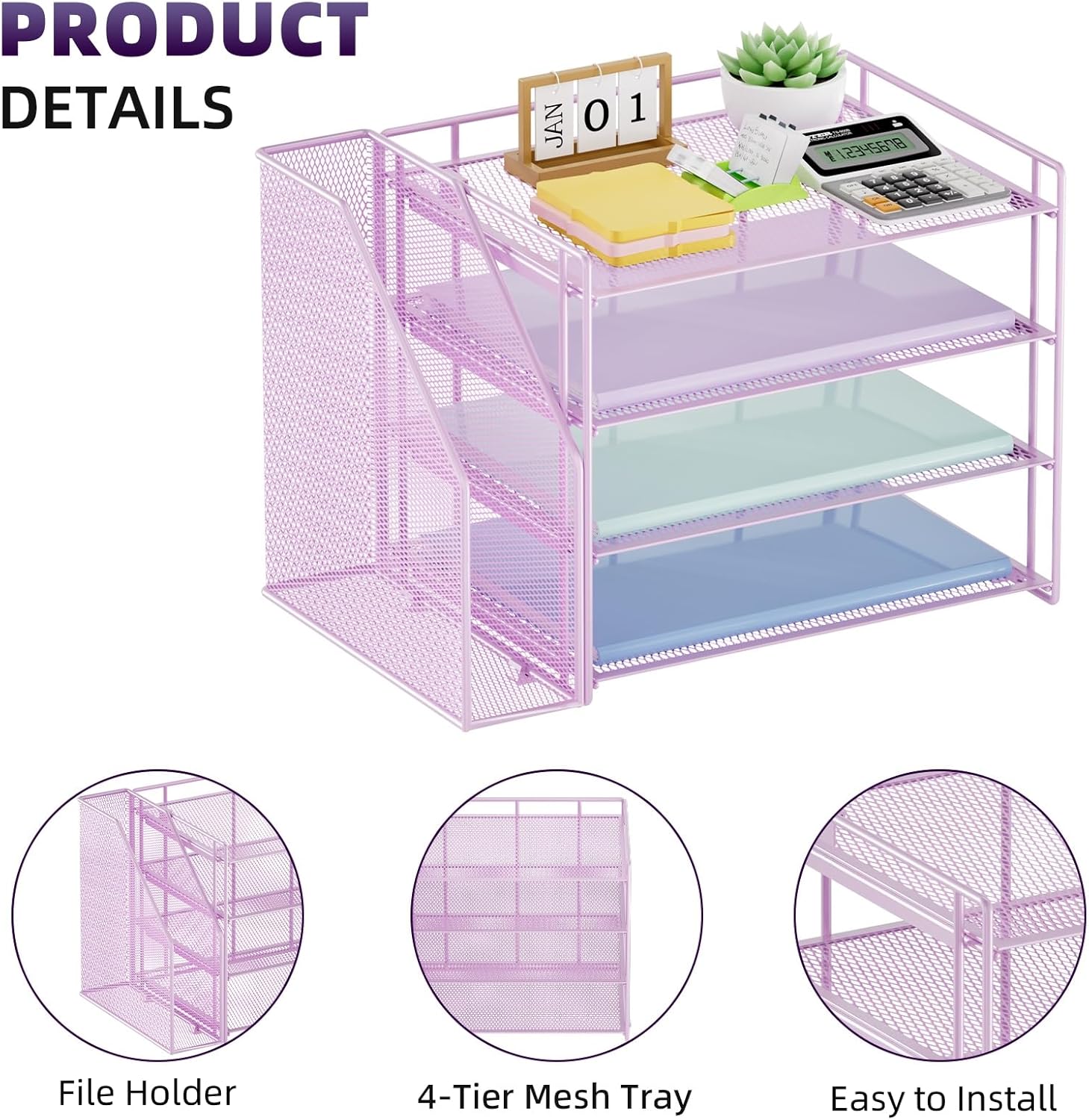 Marbrasse Desk Organizer and Accessories,4-Tier Paper Letter Tray Organizer with File Holder,Desk Accessories & Workspace Desktop Organizers for School Home Office Supplies (Purple)