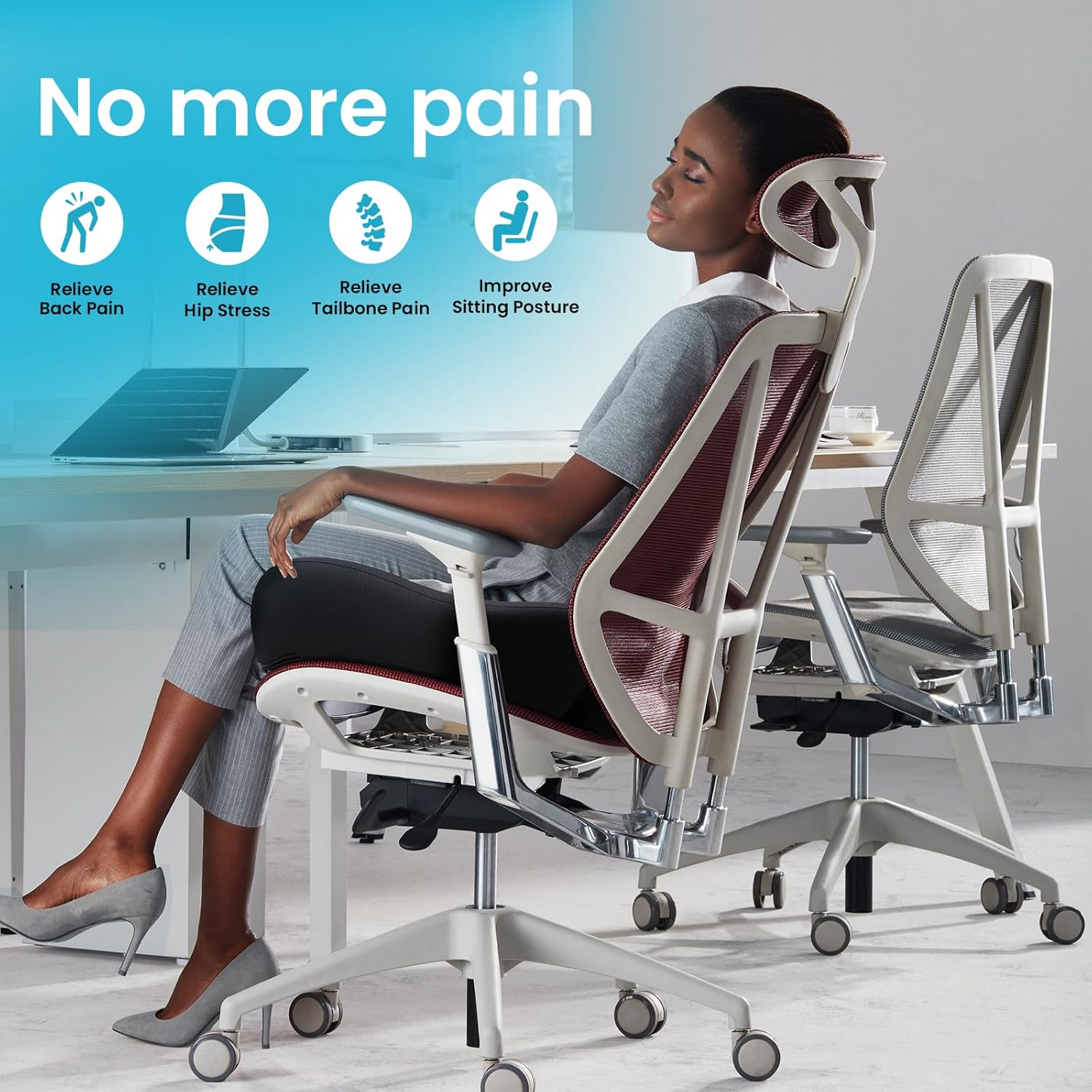 - 🏅【Ergonomic Design for Pain Relief】 The unique contoured shape reduces pressure on the lower back, hips, and coccyx, offering relief from sciatica and back pain while promoting better posture.