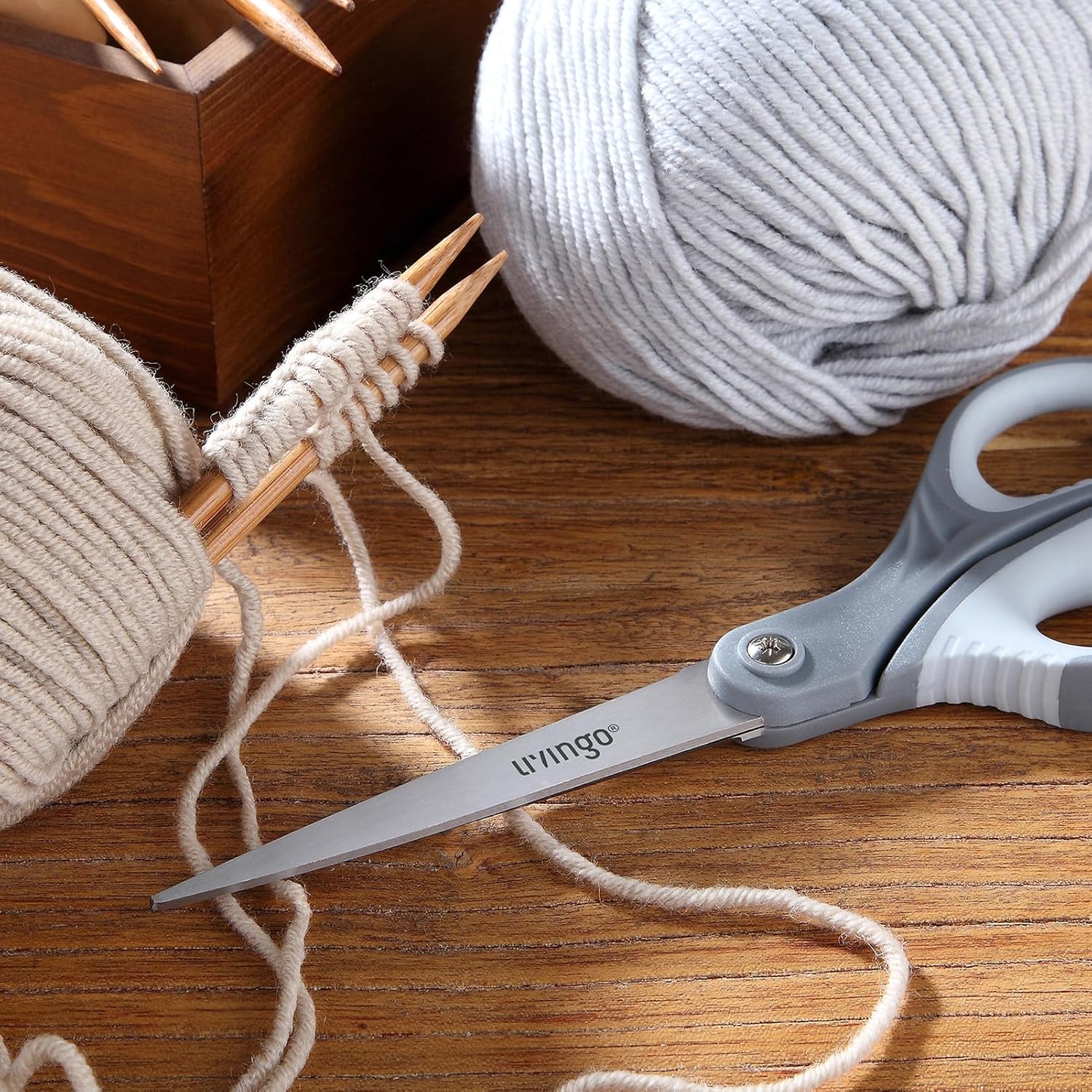 LIVINGO 3 Pack Scissors for Office: Sharp Stainless Steel Shears Heavy Duty All Purpose for Cutting Crafting Paper Fabric, Gray Comfort Handles, 8.5 Inches