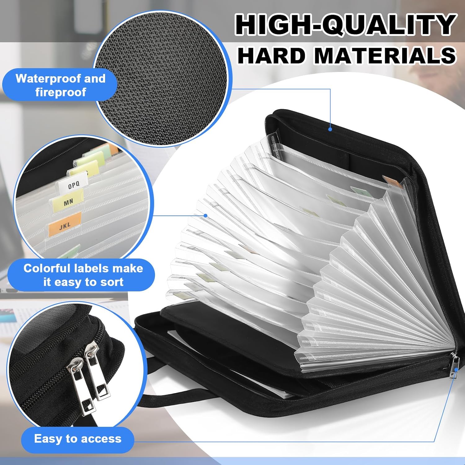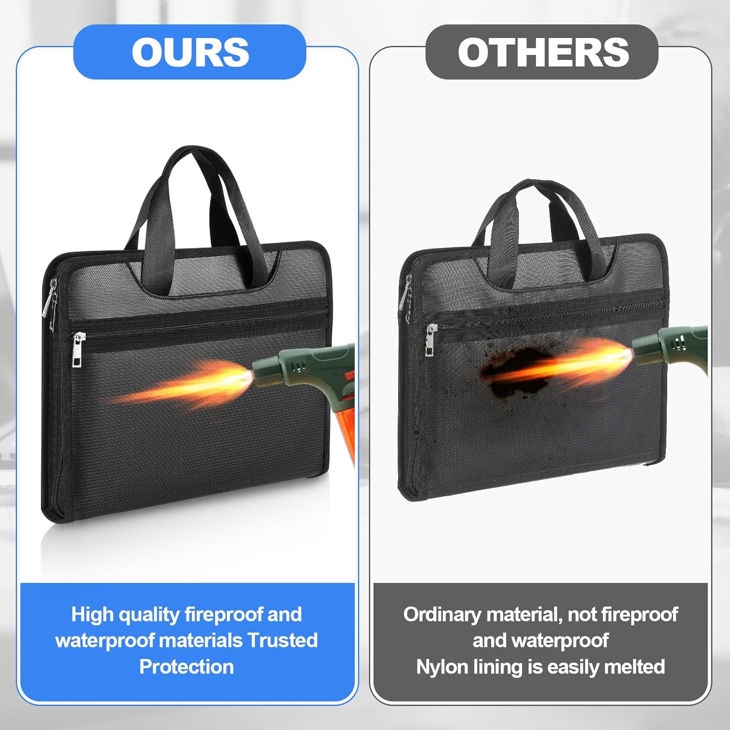 - Fireproof Waterproof Designed: get durability with our fireproof document organizer designed with anti static double layer non itchy silicone coated fiberglass; This material make your valuable documents are protected against possible fire or water related damages; Besides being fireproof and waterproof, its resistance to static contributes to an increased level of safety, guarding your sensitive documents from potential harm