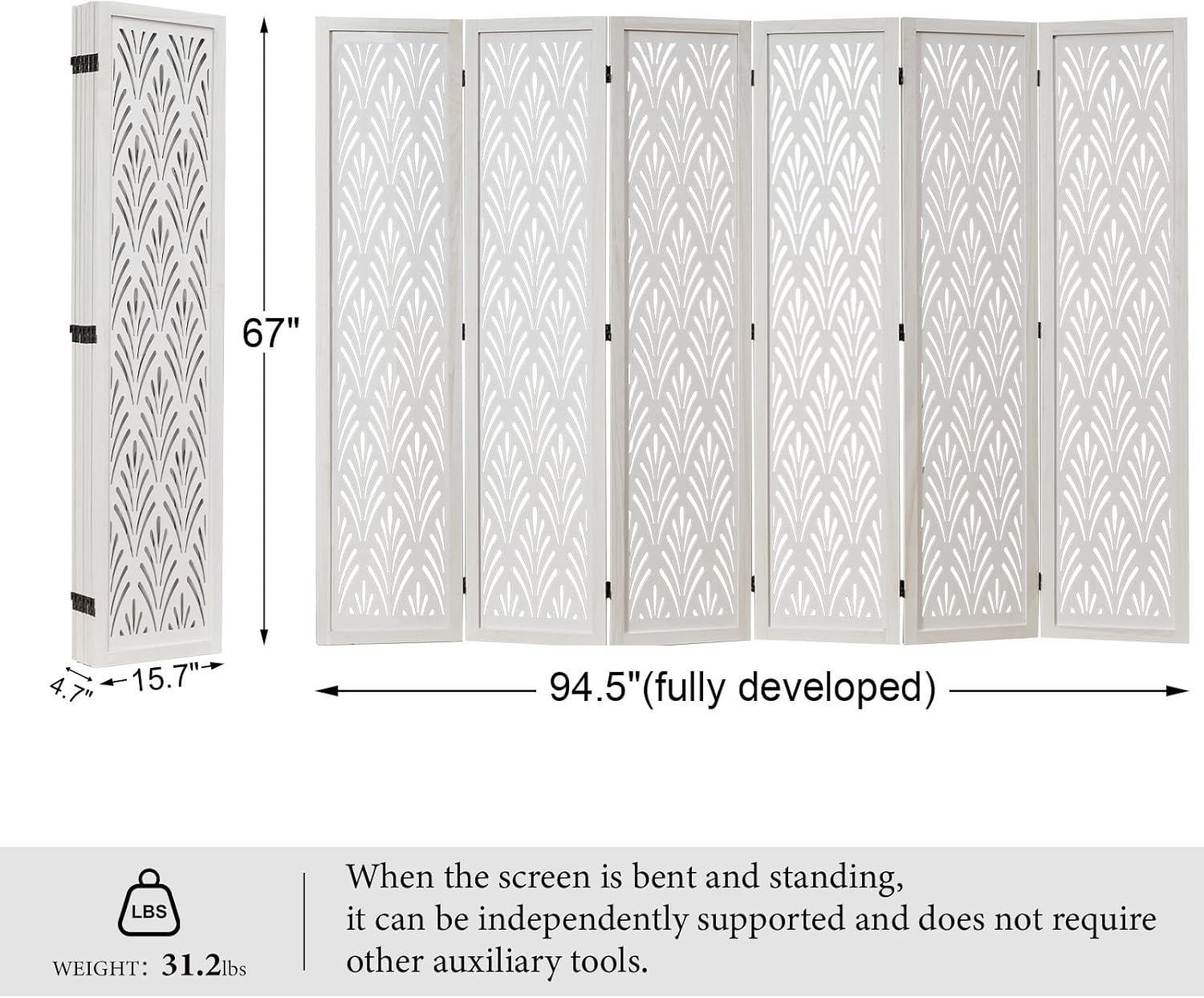 - 【Premium Materials】 Crafted from premium materials, including solid wood and carved MDF, our white room divider combines durability with artistic detail. The carved panels allow gentle light to pass through, creating a subtle play of shadows that enhances the ambiance of any room. This blend of sturdy construction and aesthetic appeal ensures long-lasting performance in various indoor settings.