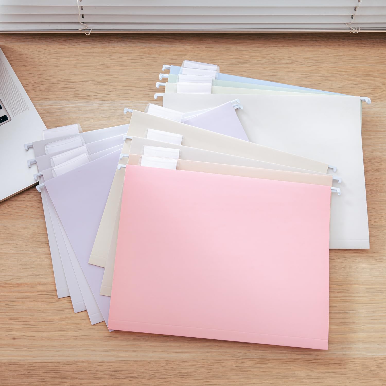Y YOMA 24 Pack Colored Hanging File Folders Letter Size Decorative Hanging Folder Cute Pretty File Folder for Filing Cabinet Drawer Office Home with 1/5-Cut Adjustable Tabs, Soft Color