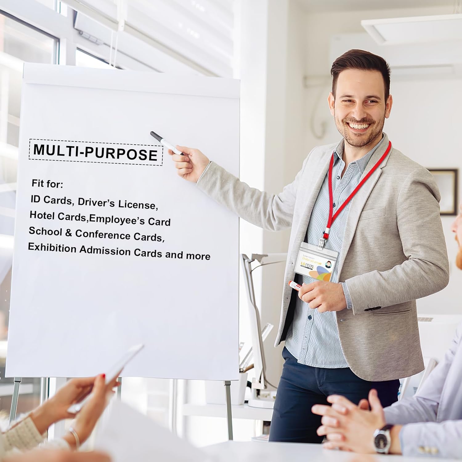 - Widely used: These ID Badge holders are perfect for factory workers, students, and office workers. Perfect for conferences, seminars, offices, trade shows, concerts, weddings, schools, security or other events that require badges or ID cards, name tags, credit cards, cardholders, keys