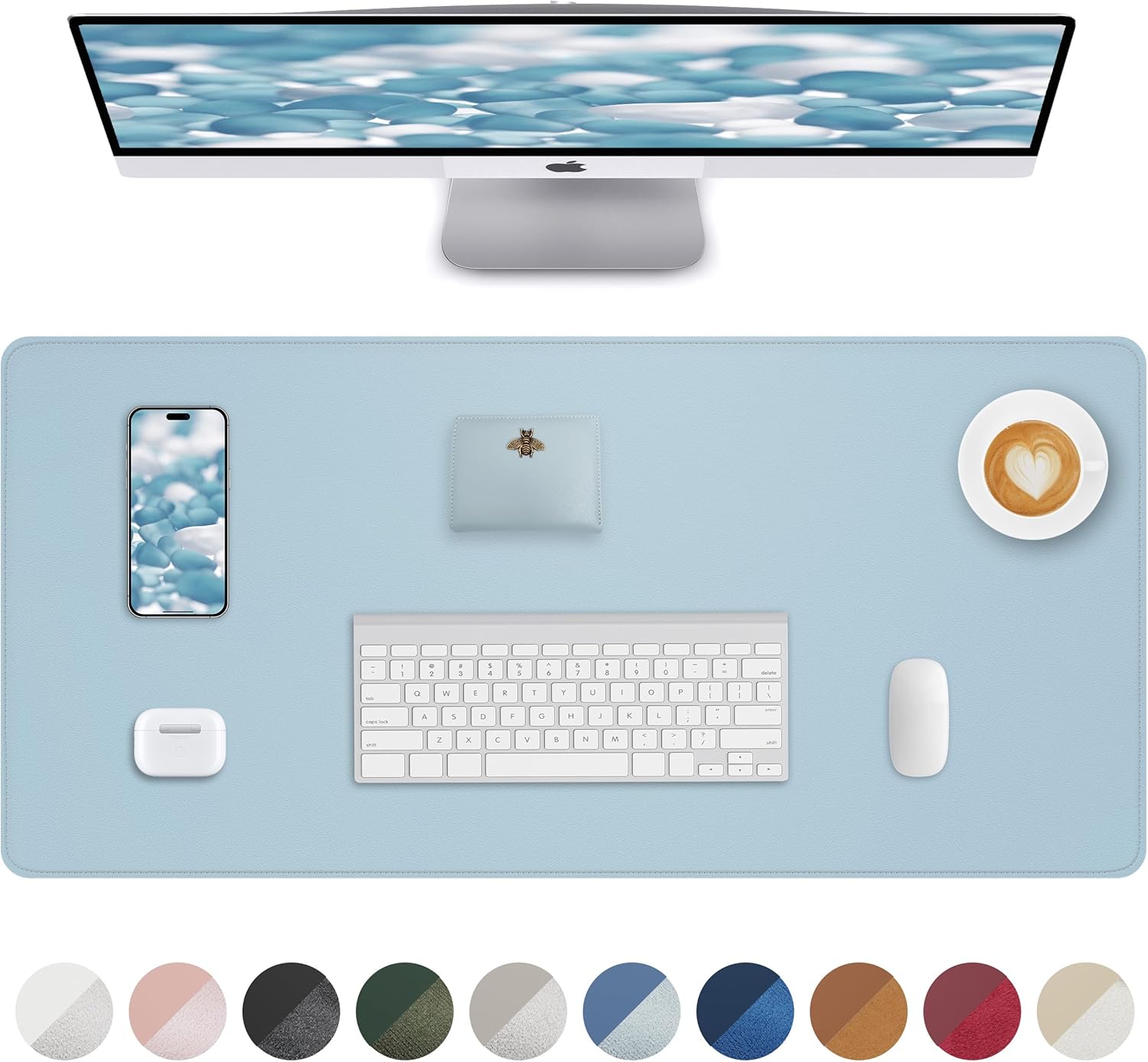 Leather Desk Pad Protector,Desk Mat,Large Mouse Pad, Non-Slip Desk Pad, Waterproof PU Leather Desk Blotter Mat, Desk Cover for Office and Home (Light Blue, 36" x 17")