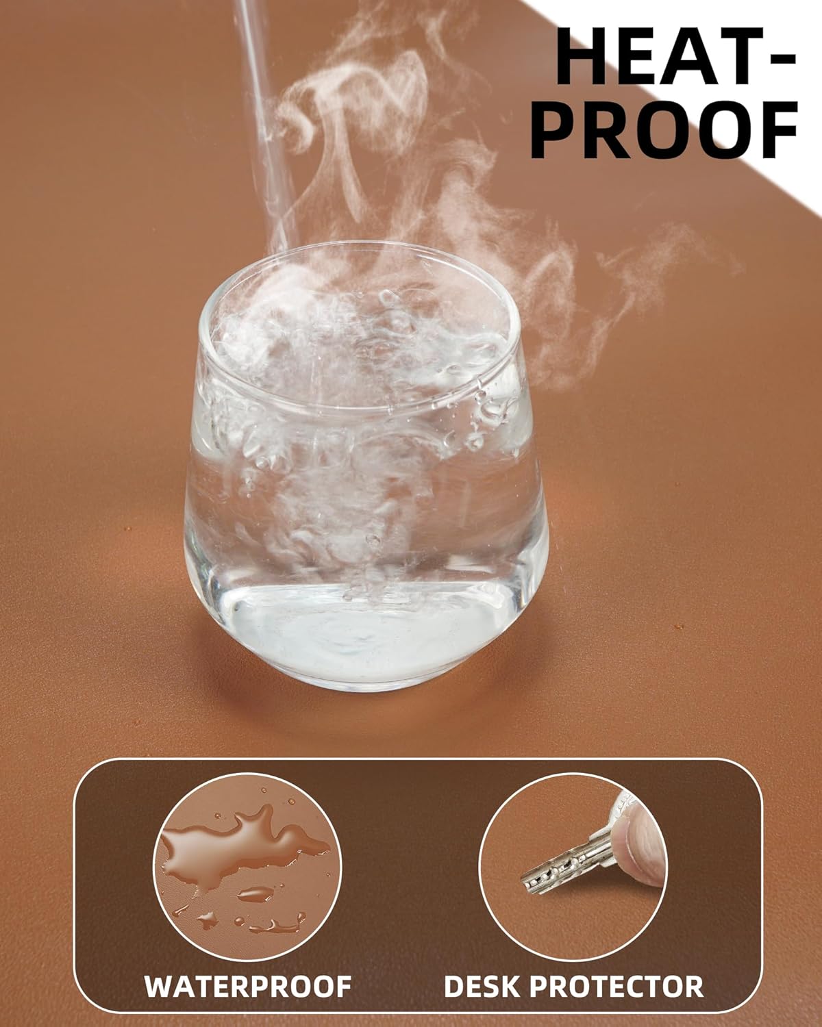 Leather Mouse Pad & Desk Blotter Mat - Non-Slip PU Laptop Desk Pad, Waterproof Writing Pad for Office & Home (Brown, 36" x 17")