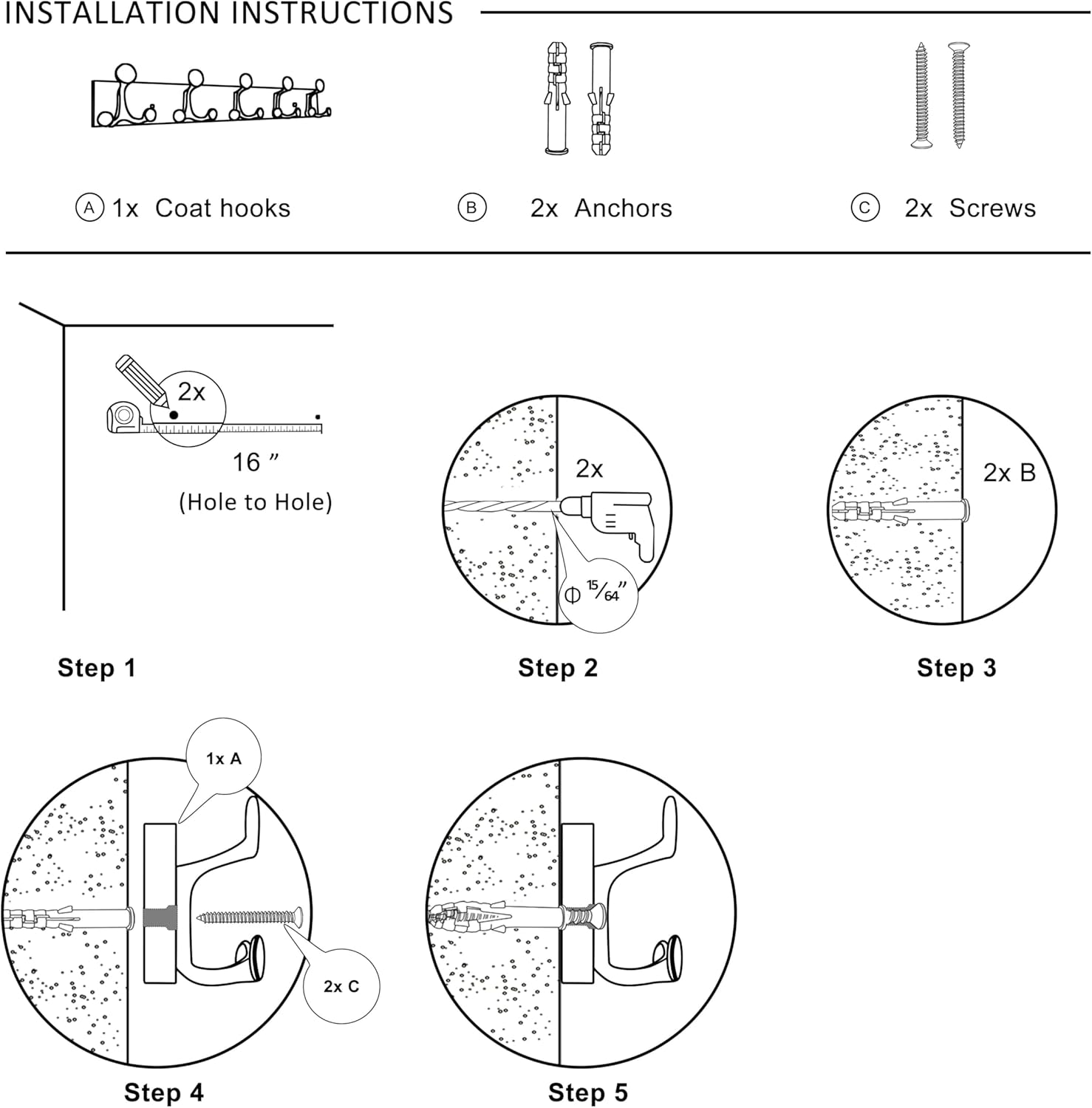 - 【Sturdiness & Large spacing】Solid wall mount coat rack with 5 triple hooks, hang 5 or 10 jackets per rack. Plenty of space to support clothes, bags, and pet supplies, making it perfect for family.