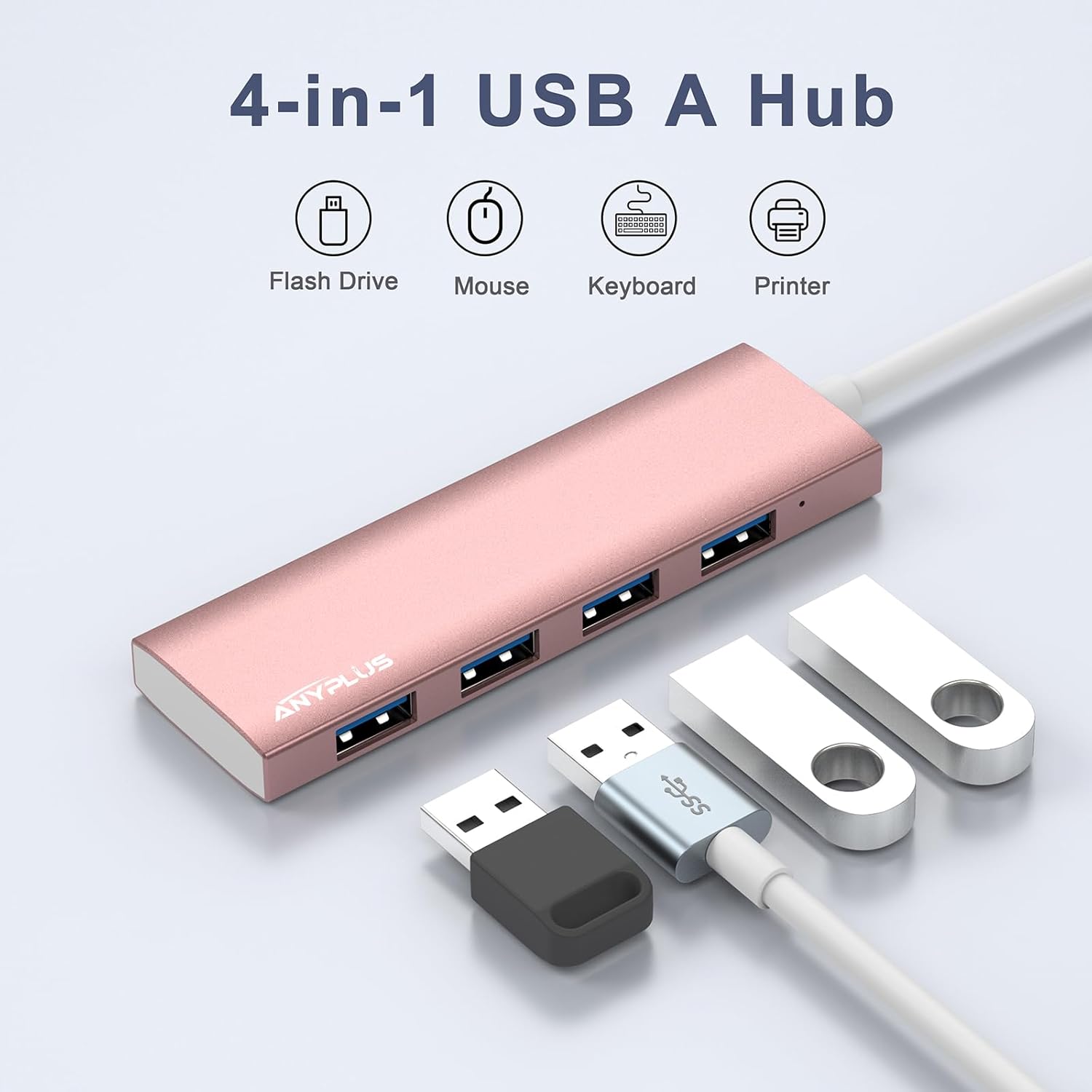USB Hub, USB 3.0 Hub Aluminum Alloy Ultra Slim USB Splitter, Portable 4 Port USB Extender, USB Hub for Laptop, PC, MacBook, iMac, Surface Pro, Mac Pro, Flash Drive, XPS 【Pink】