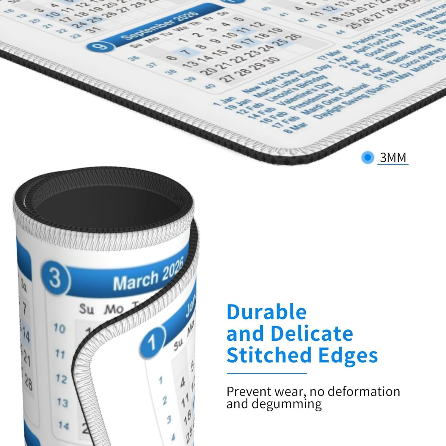 Mouse Pad, 2026 Calendar with Holiday Mouse Pads Mousepad, Anti-Slip Rubber Mouse Mat Desk Pad for Gaming Office Laptop Computer