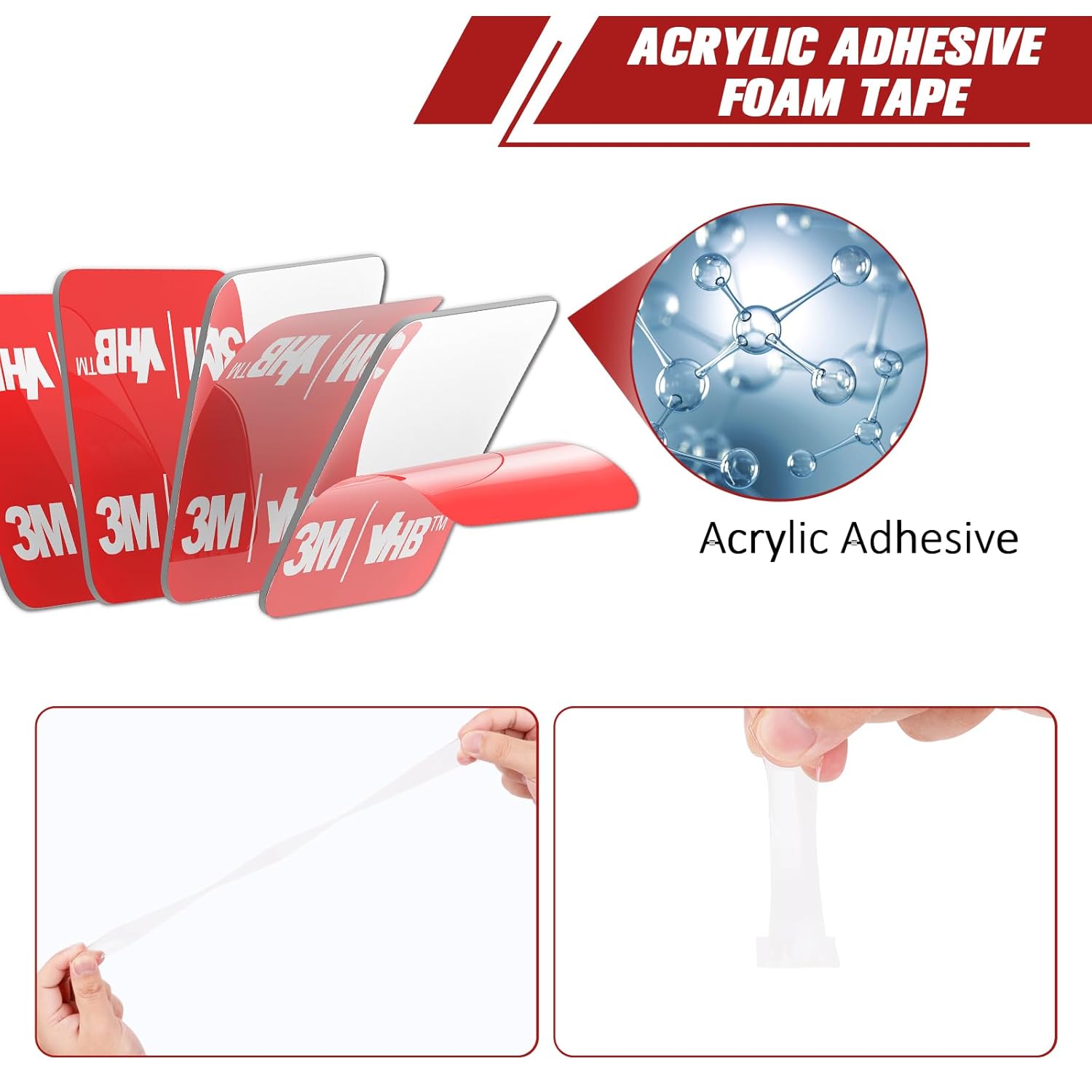 - HIGH QUALITY: Adhesive pads are crafted with the same premium durable acrylic adhesive as 3M VHB double-sided heavy-duty foam tape, featuring viscoelastic properties. This advanced material delivers exceptional bonding strength and long-term durability, making it an ideal alternative to traditional mechanical fasteners like rivets, welds, and screws. Engineered to perform under extreme conditions, these pads ensure a strong, reliable hold on various surfaces including metal, glass, and plastics.
