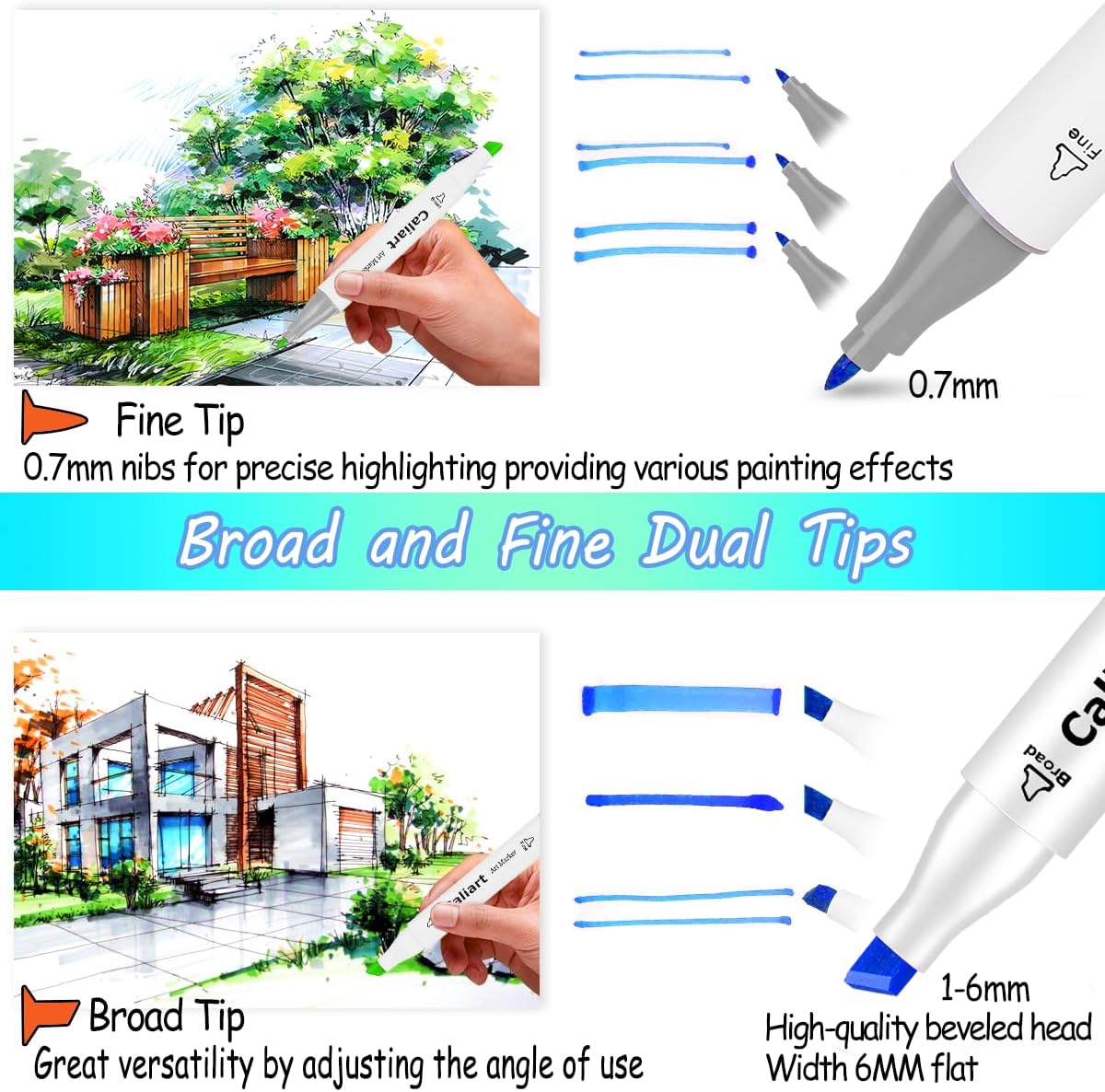 Caliart 52 Colors Fine & Chisel Alcohol Markers for Adult Coloring Book, Dual Tip Artist Sketch Art Markers, Aesthetic Cute Preppy Stuff School Supplies, Pens for Lettering Drawing Cards Planner