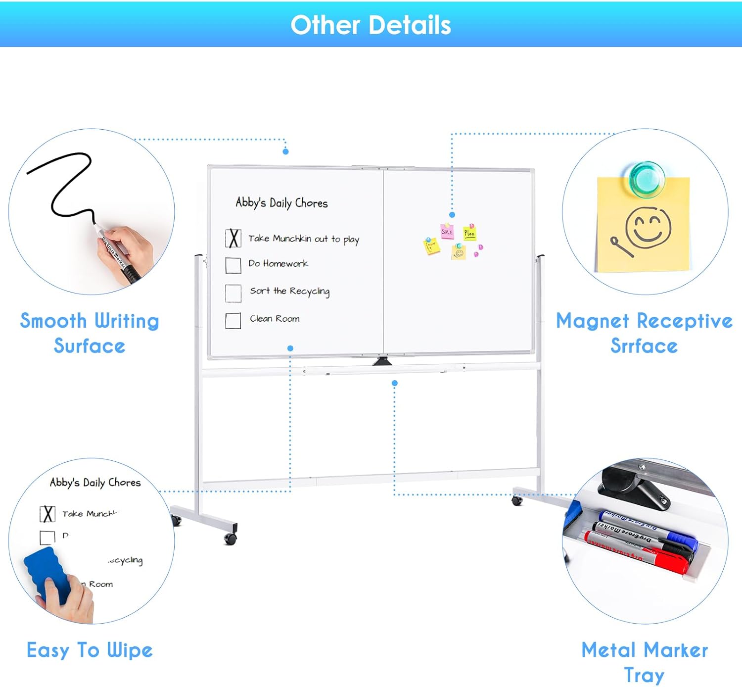 maxtek Rolling Whiteboard, 72x48 Large Double-Sided White Board Dry Erase on Wheels, Giant Magnetic White Board Standing for Office, School, Home Office, Homeschool(72 x 48)