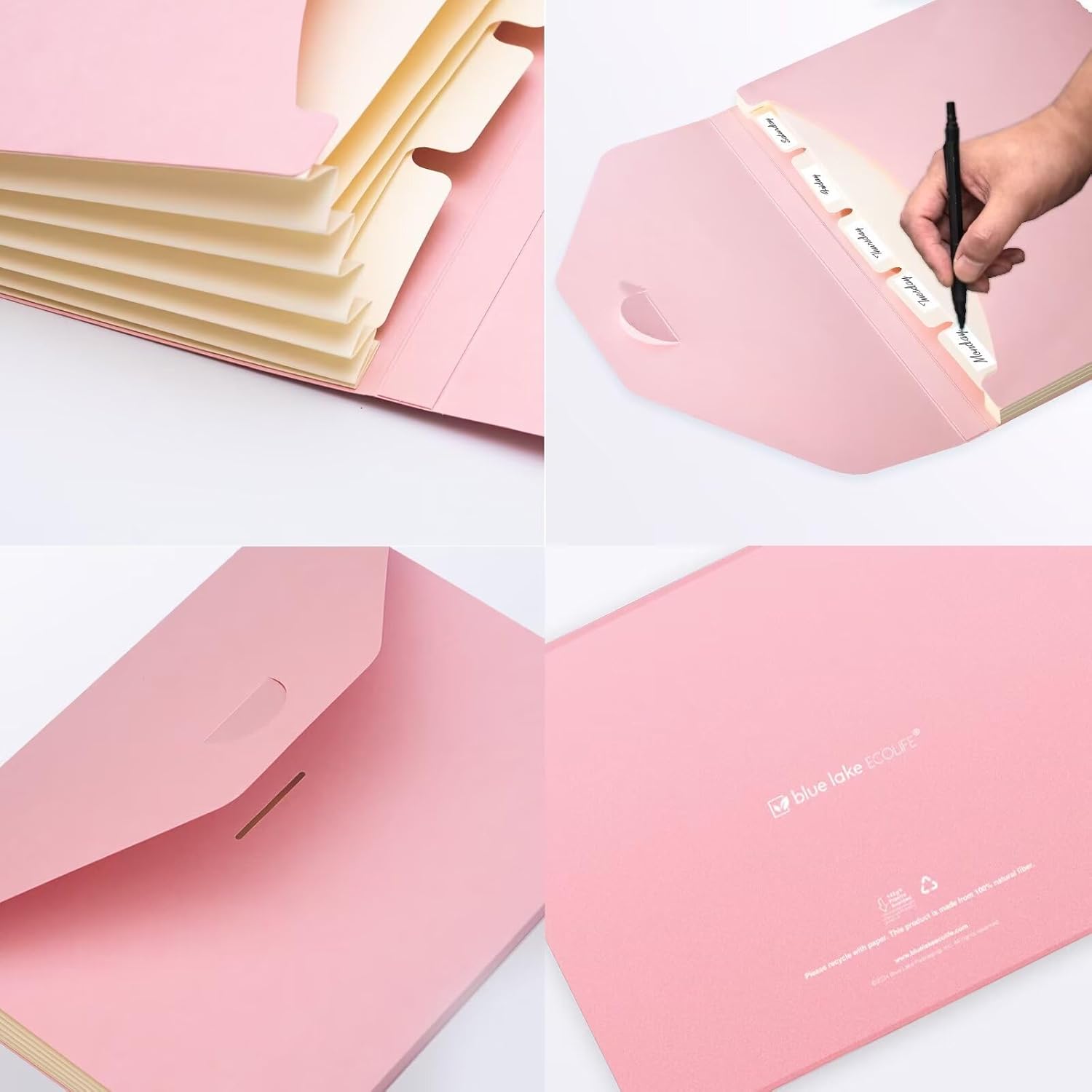 Blue Lake ECOLIFE Expanding File Folder Accordion Folders ECO Friendly 6 Pocket Organizer Pink