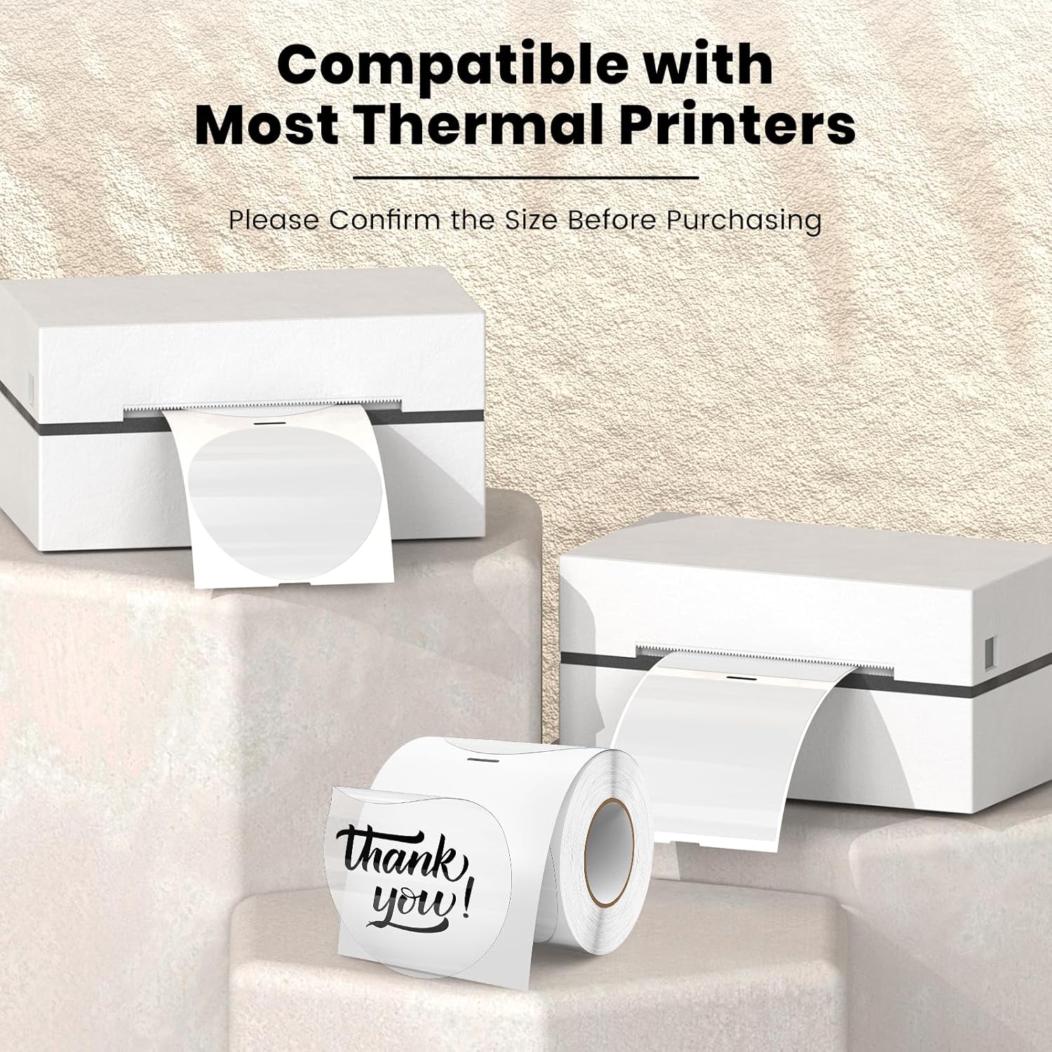 - Package: Print size of FINDAT transparent round thermal stickers is 3" with 200 pieces per roll. Suitable for most direct thermal printers. Note: Not for mini printers,such as M110, M120, M220, T50m Pro.