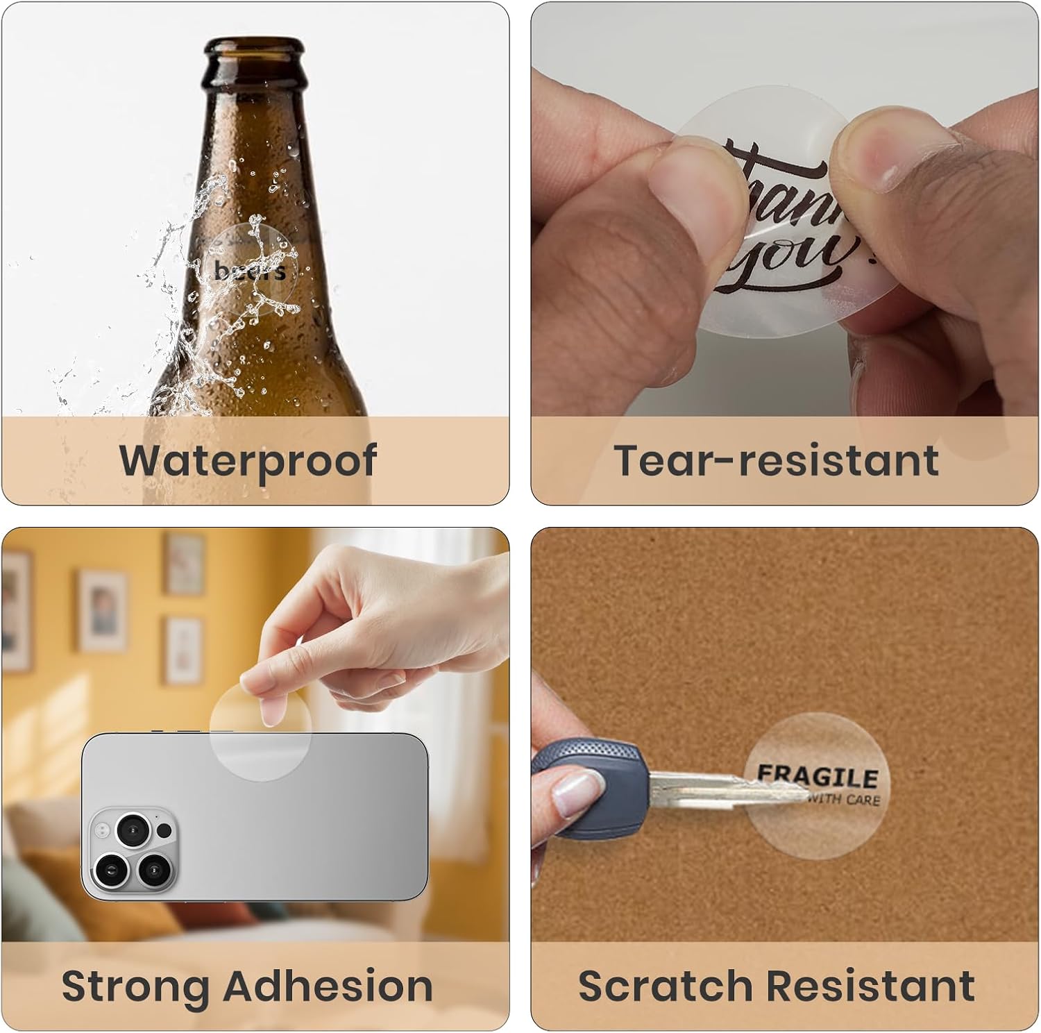 - Personalized: You can create custom business logo, thank you stickers, gift tag stickers or print QR codes, barcodes, name tags, address on products. Printable labels can also be easily written on the surface with a marker pen.