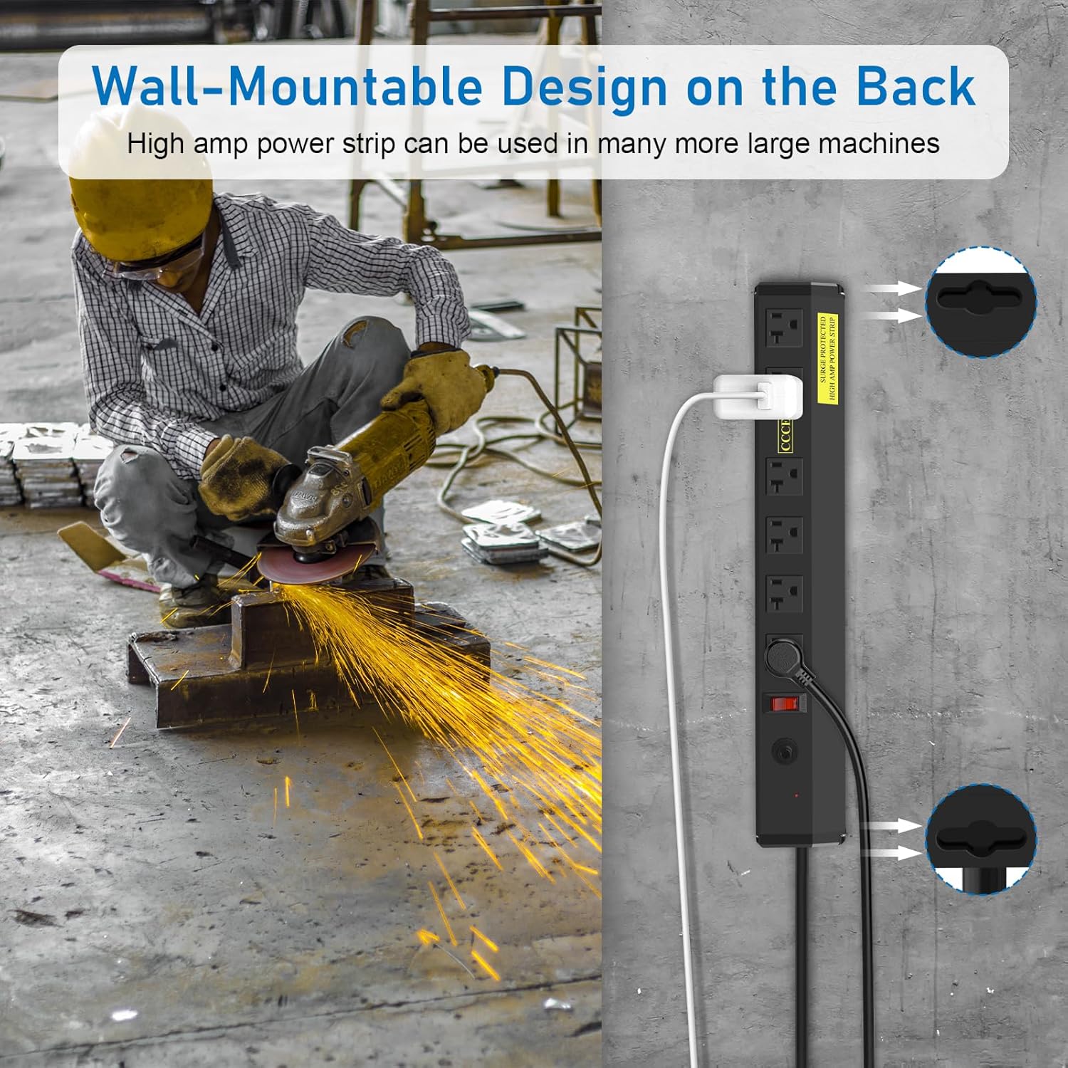- Wide spaced outlets perfect for using bigger plug and two hanging holes on the back can easy to mount on the wall. Perfect for the garage tool box.