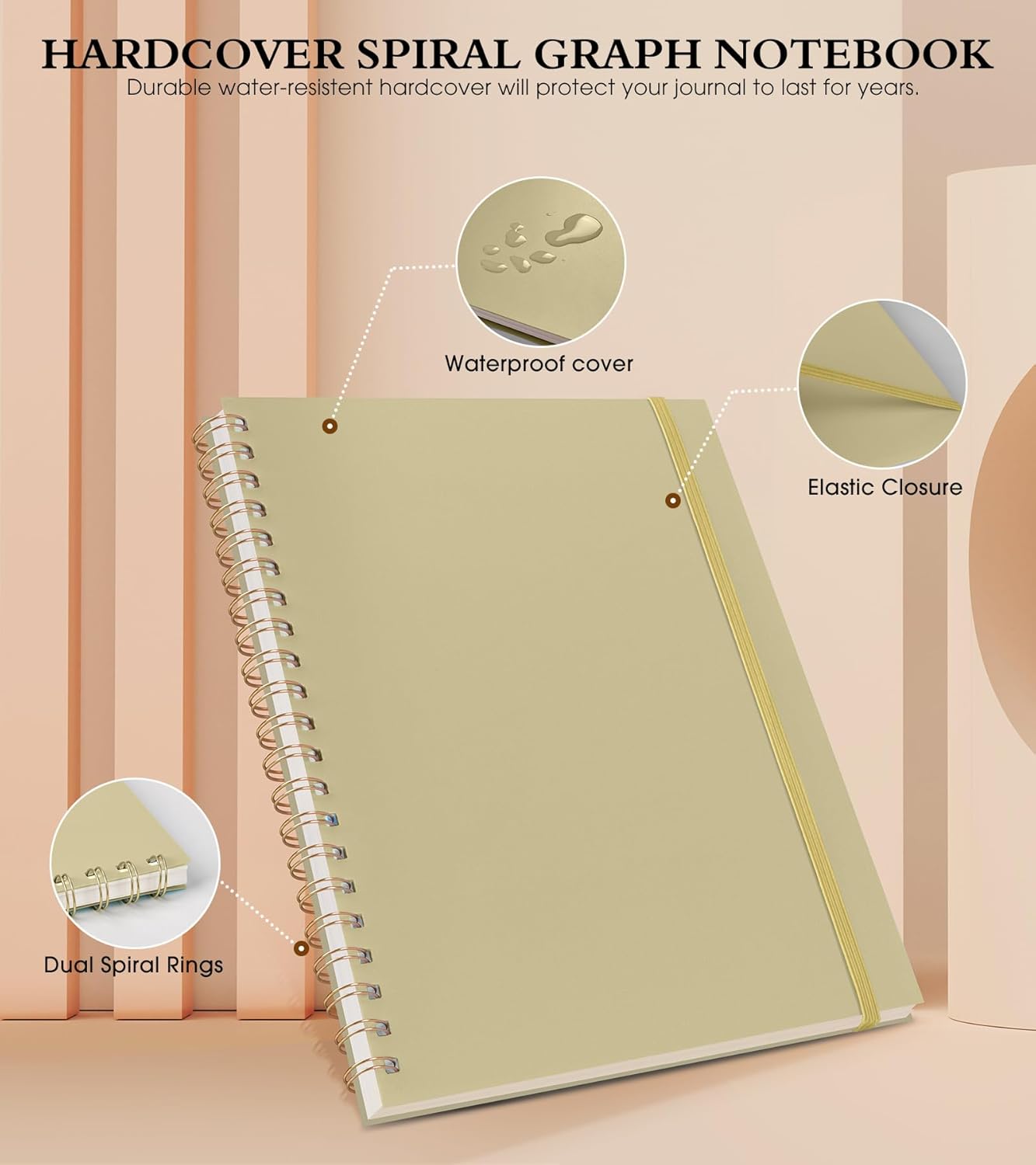- 【A4 Graph Spiral Journal Notebook】 Large a4 size 8.5"x11" grid notebook, standard 5mm x 5mm graph paper for better writing and drawing experience. The professional sturdy water-resistant plastic hard cover will protect your graphing notebooks to last for years, which has oil-resistant and anti-bending properties, effectively protecting the internal paper of the journal and provides a comfortable writing surface.