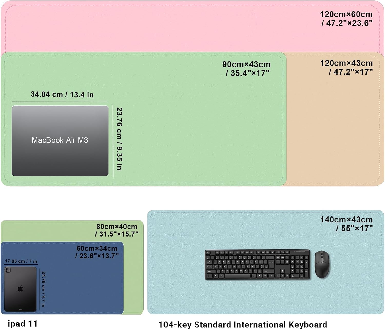 - 🖱️ 🖱️Versatile Usage Large Mouse Pad: Leather computer pad in 6 sizes and 12 colors. A portable storage strap allows you to roll up the desk pad and take it with you. Accommodate a laptop, mouse, and keyboard, which can be used as a mouse pad, for writing, and painting. A great choice for office work, and home.