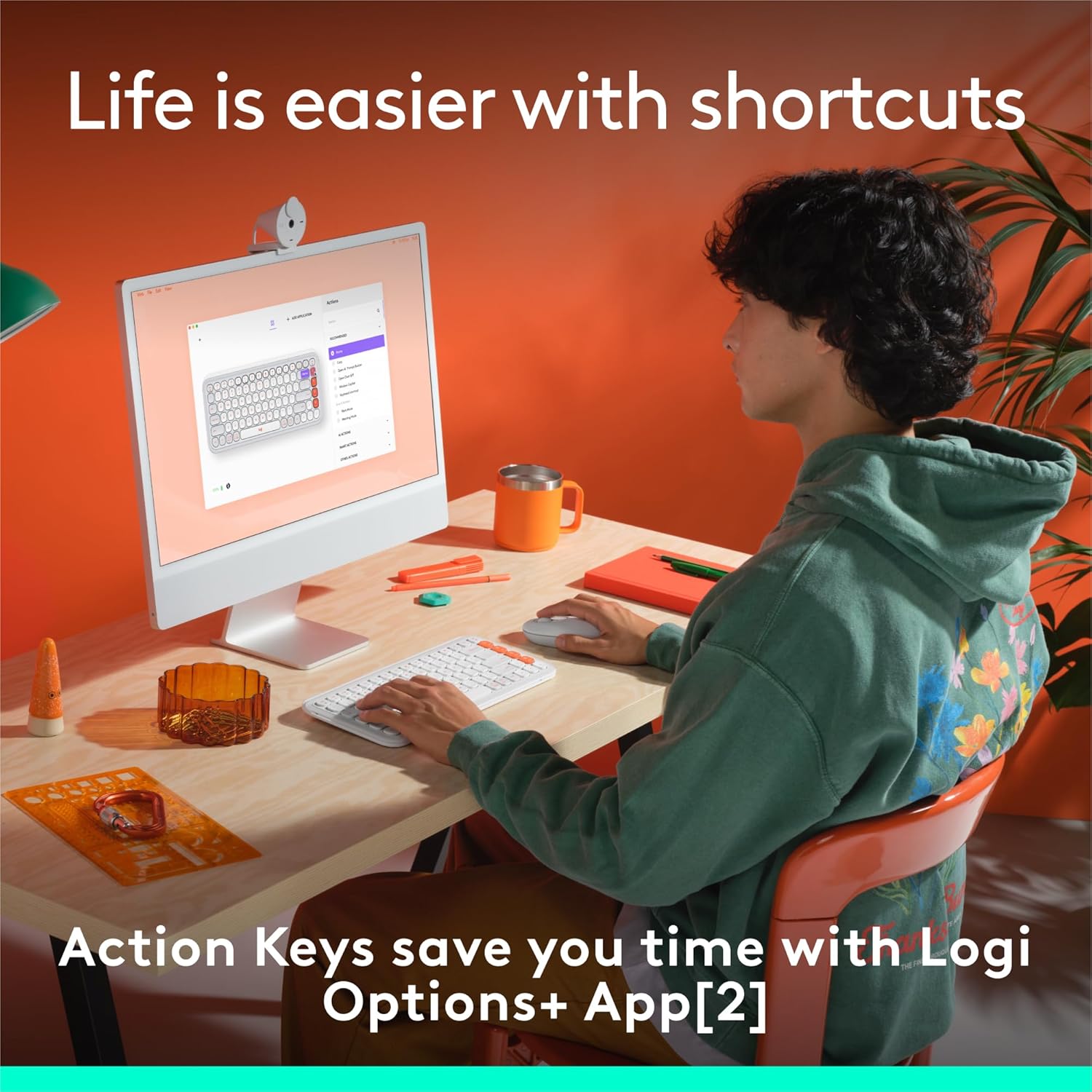 - Life Is Easier With Shortcuts: Quickly switch between work, social, and break (Netflix, Spotify) modes, or access your AI tools in less than 1 second (2) with the Action Keys and Logi Options+ App (1)