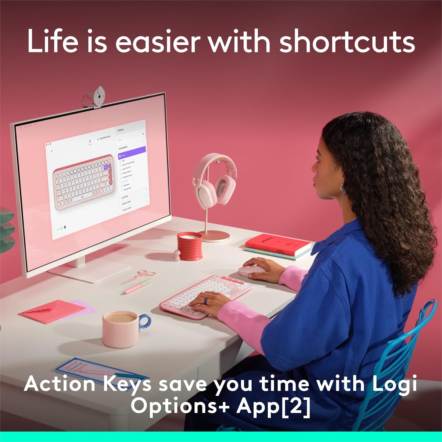 - Life Is Easier With Shortcuts: Quickly switch between work, social, and break (Netflix, Spotify) modes, or access your AI tools in less than 1 second (2) with the Action Keys and Logi Options+ App (1)
