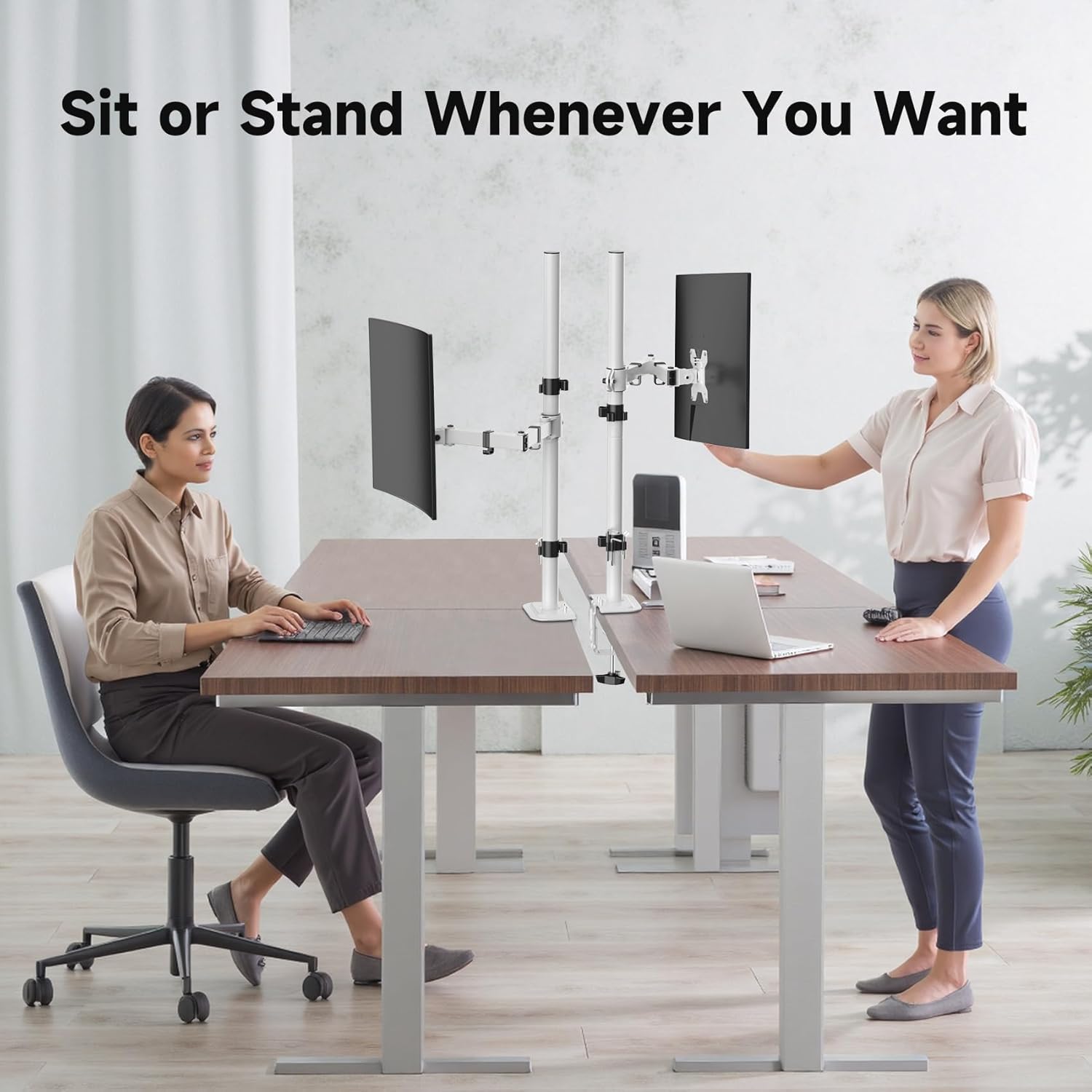 Suptek Single Monitor Arm Desk Mount Fully Adjustable Monitor Stand for 1 / One Screen up to 32 inch Extra Tall 31.5 inch Pole,White (MD6821W)
