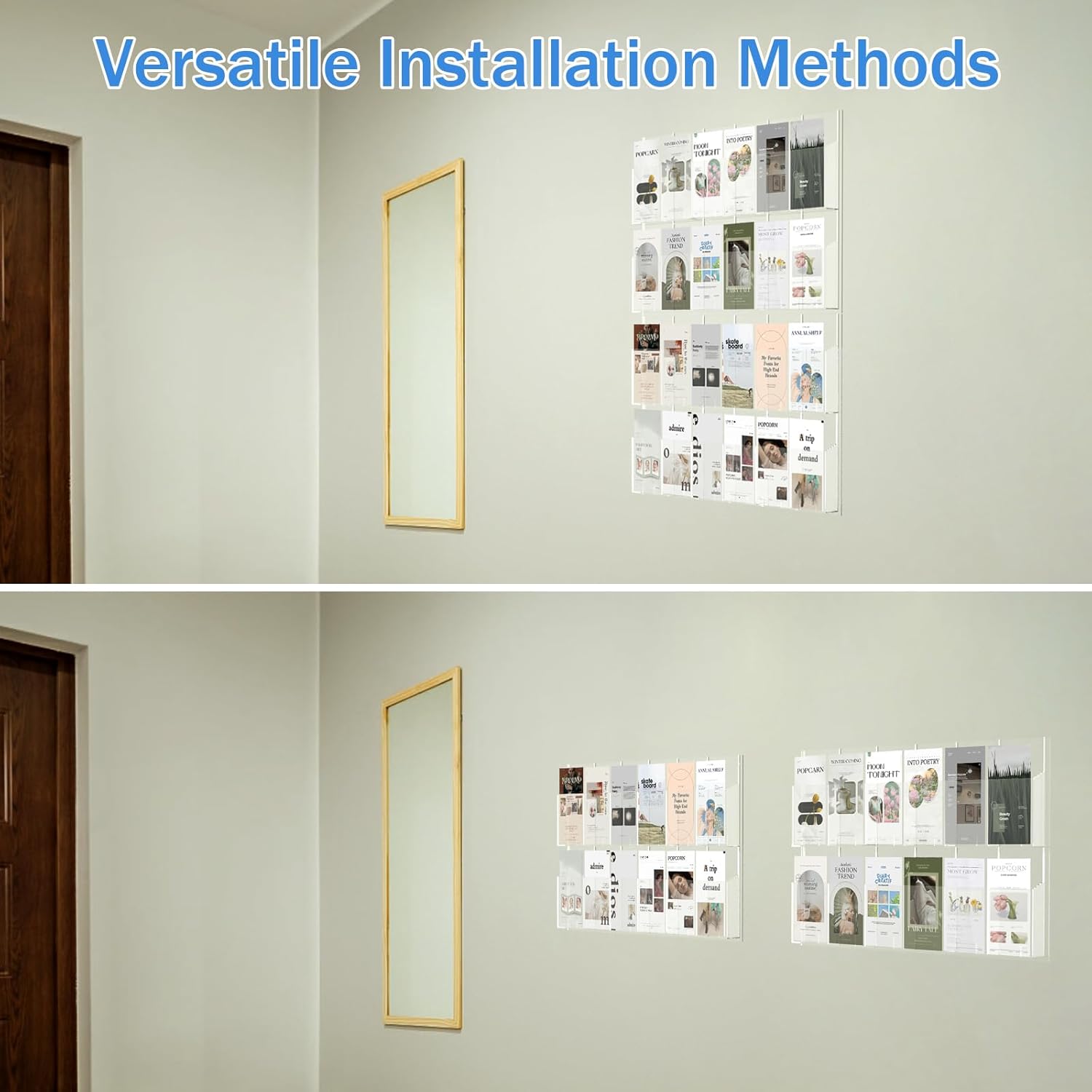 Acrylic Brochure Pamphlet Holder, 24 Clear Wall Mount Display Holders, Trifold Flyer Rack, Literature Storage Rack for Home, Offices, Waiting Room