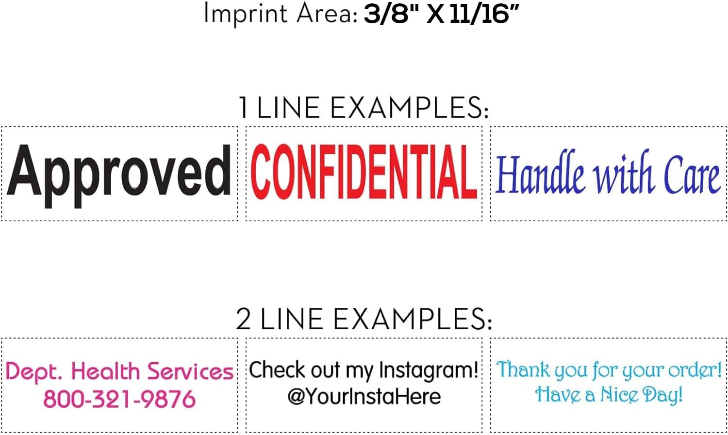 - Customize your stamp from a wide variety of colors and font combinations - designed specifically for you by our graphics team.