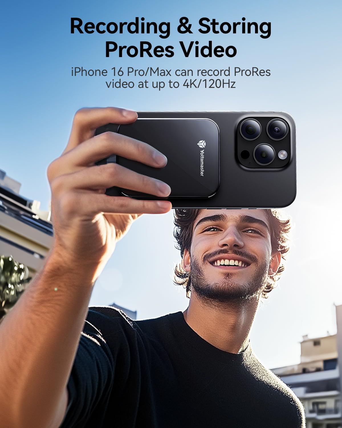 - 【Supports 4K ProRes Video Recording】Magnetic external solid state drive supports 4K ProRes video recording on iPhone 15/16 Pro/Max. It enables real-time recording and storage without needing a secondary transfer, allowing you to capture beautiful moments in your life at any time.