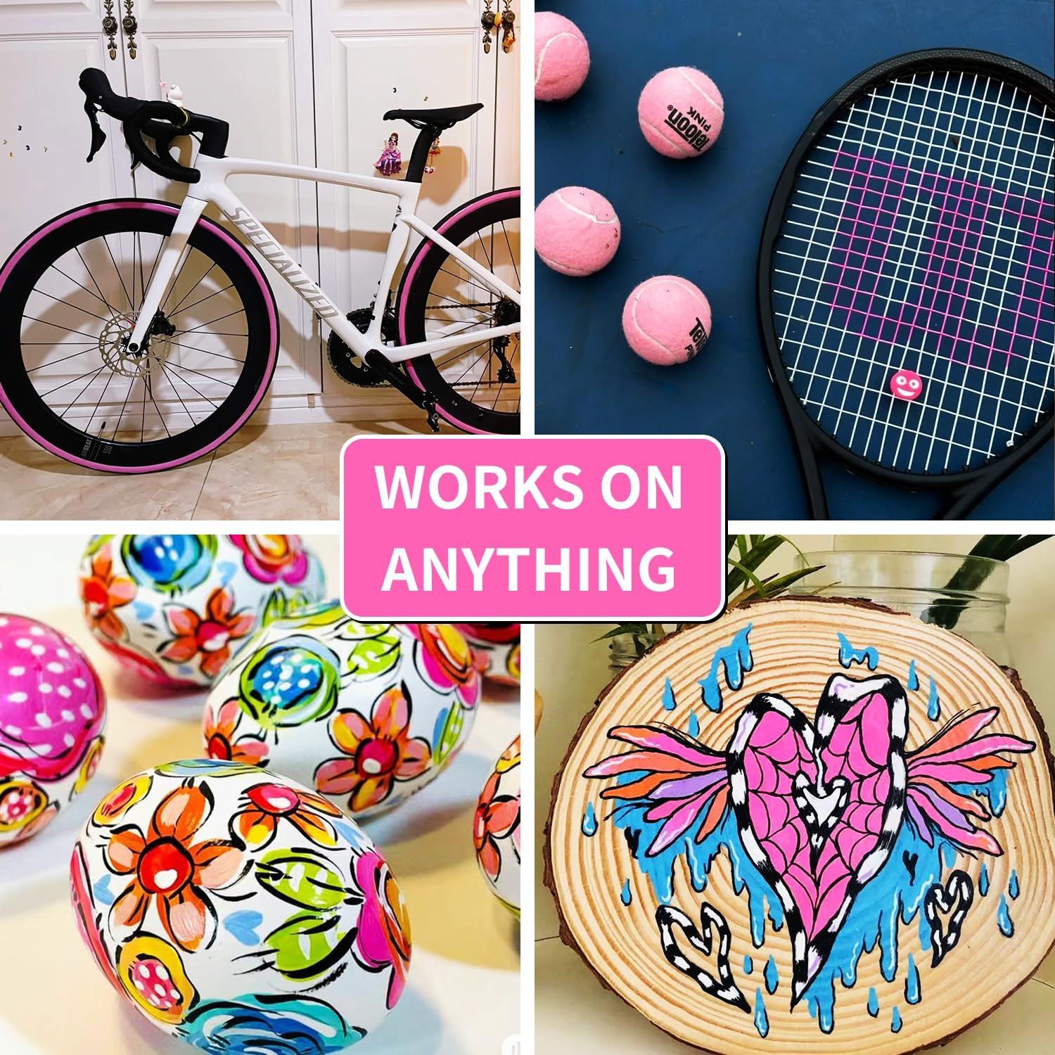 - Extensive Use: Paint pens mark steel and mark objects such as tires, bolts, metal pipes, bumper panels and more. Not just metal, pink permanent markers can be used on rocks,wood, ceramic, canvas, tires, rubber, glass and plastic surfaces
