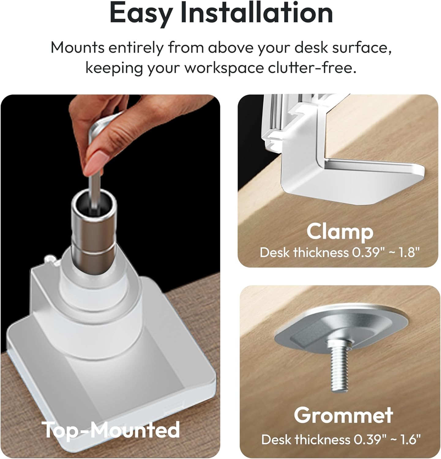 - Efficient Cable Management - Integrated cable clips keep your workspace organized and clutter-free; free up table space by routing your monitor cables through the integrated channels that lead the cables behind the arm.