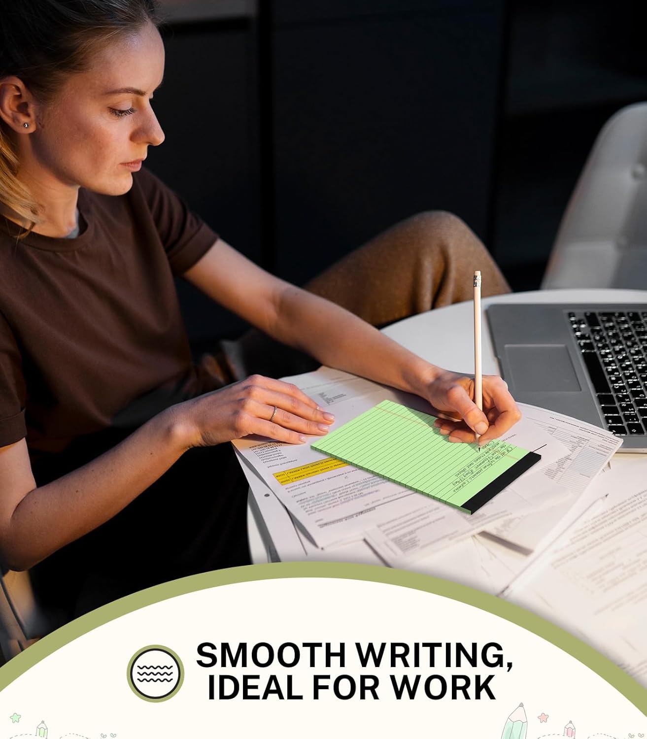 - 【 Strong Binding and Perforation 】The top of our small legal pad uses a strong and easy-to-tear production concept, along the blacktop wrap line, you can easily tear each page, and the paper is intact. Smooth and Thickened colored paper allows your pen to slide easily across the paper. To prevent ink from oozing and spilling, our small lined notepads are thicker than regular note pads, giving you a luxurious writing experience.