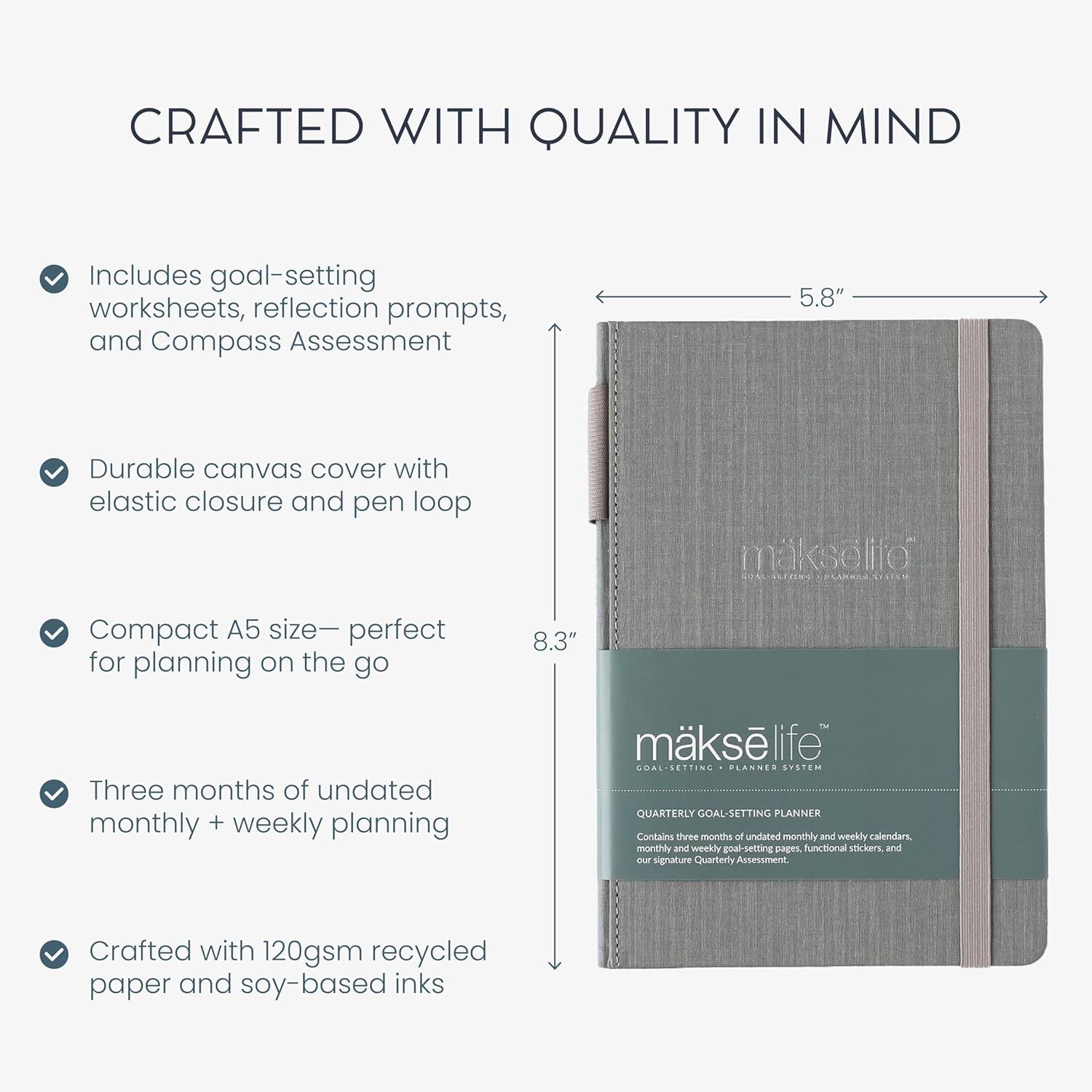 - Comprehensive Goal-Setting journal: The MäksēLife undated weekly planner supports you every step of the way with a system for meaningful goals and gentle weekly nudges to keep you on track
