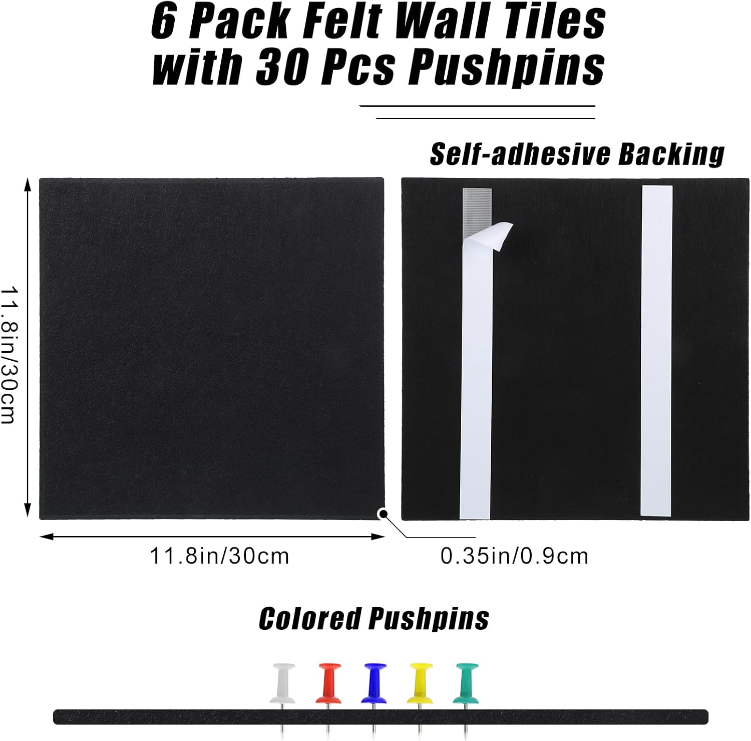 - 【Package Includes】You will receive 6 pack felt wall tiles and 30 pcs colorful thumbtacks (1 box). The size of each felt wall tile is 11.8" x 11.8" and the thickness is about 0.35". You can splice them into the desired shape and size according to your needs, such as 36" x 24", 12" x 72", etc.
