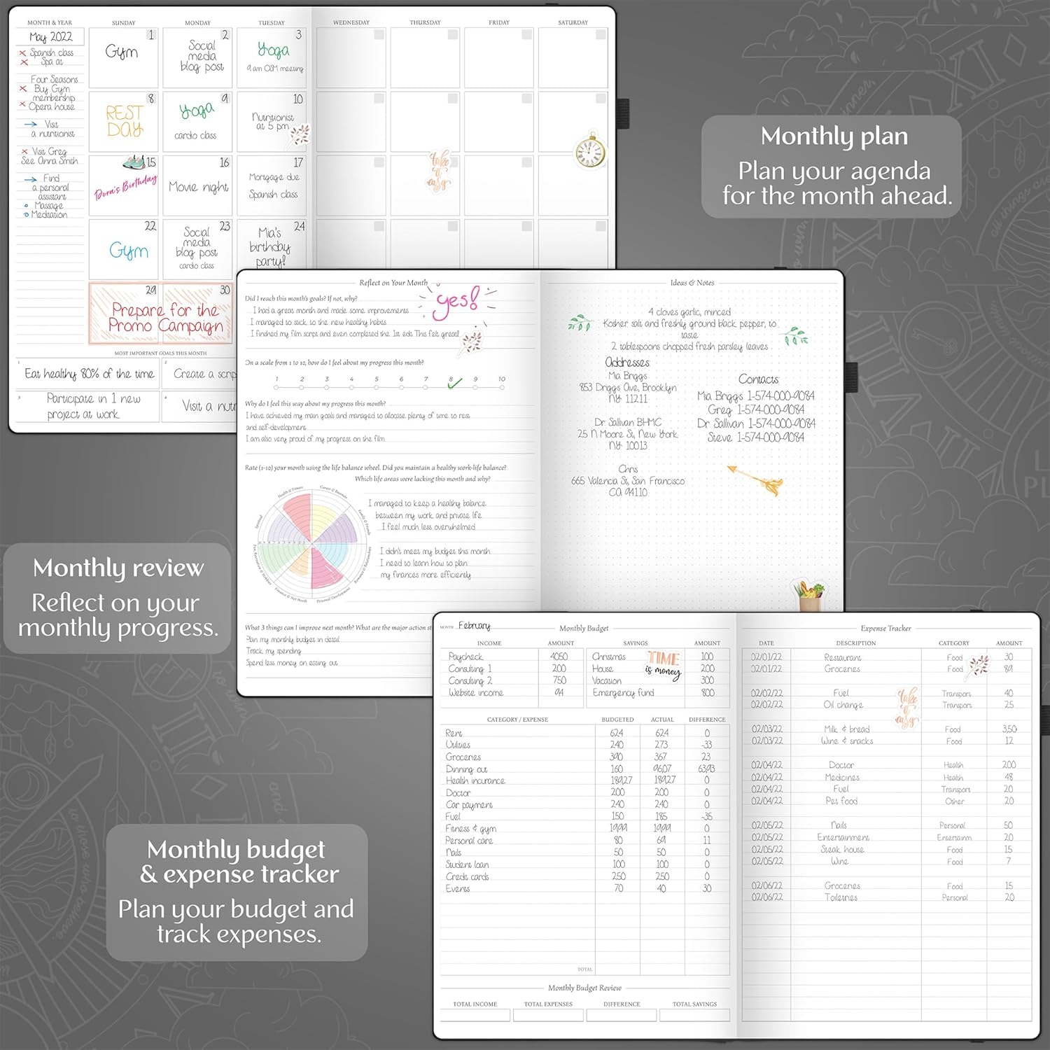 - MANAGE YOUR TIME, TO-DO'S & FINANCES ALL YEAR ROUND – Each week includes a Monday-to-Sunday layout, a habit tracker, and to-do lists. Each month features a spacious calendar, a budgeting section, and an expense tracker to stay on top of everything.