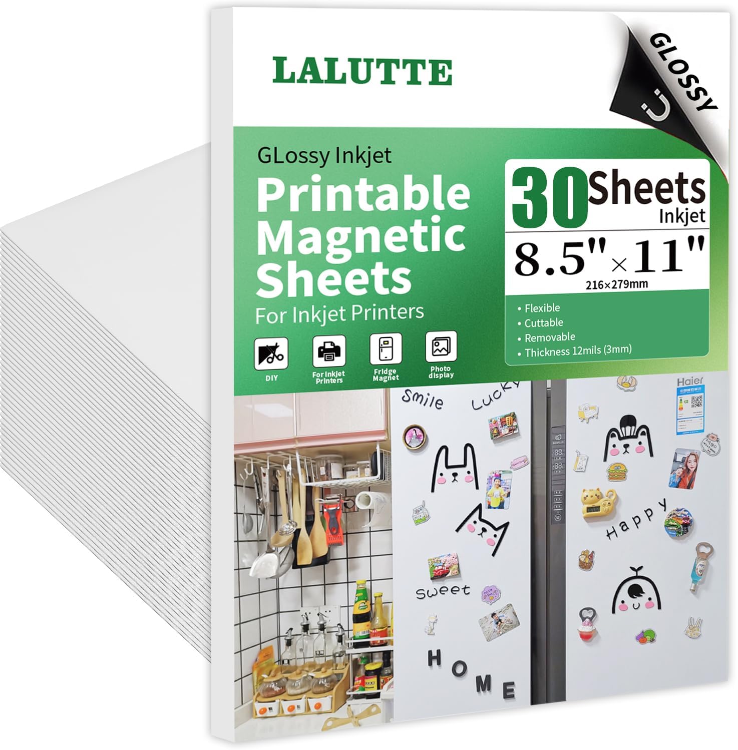 - [PREMIUM QUALITY]: Our 30pcs magnetic sheets measure 8.5 x 11 inches and are 12mil thick. The white glossy side is printable and is only compatible with inkjet printers. The back is flexible magnetic and non-adhesive, attaching easily to iron.