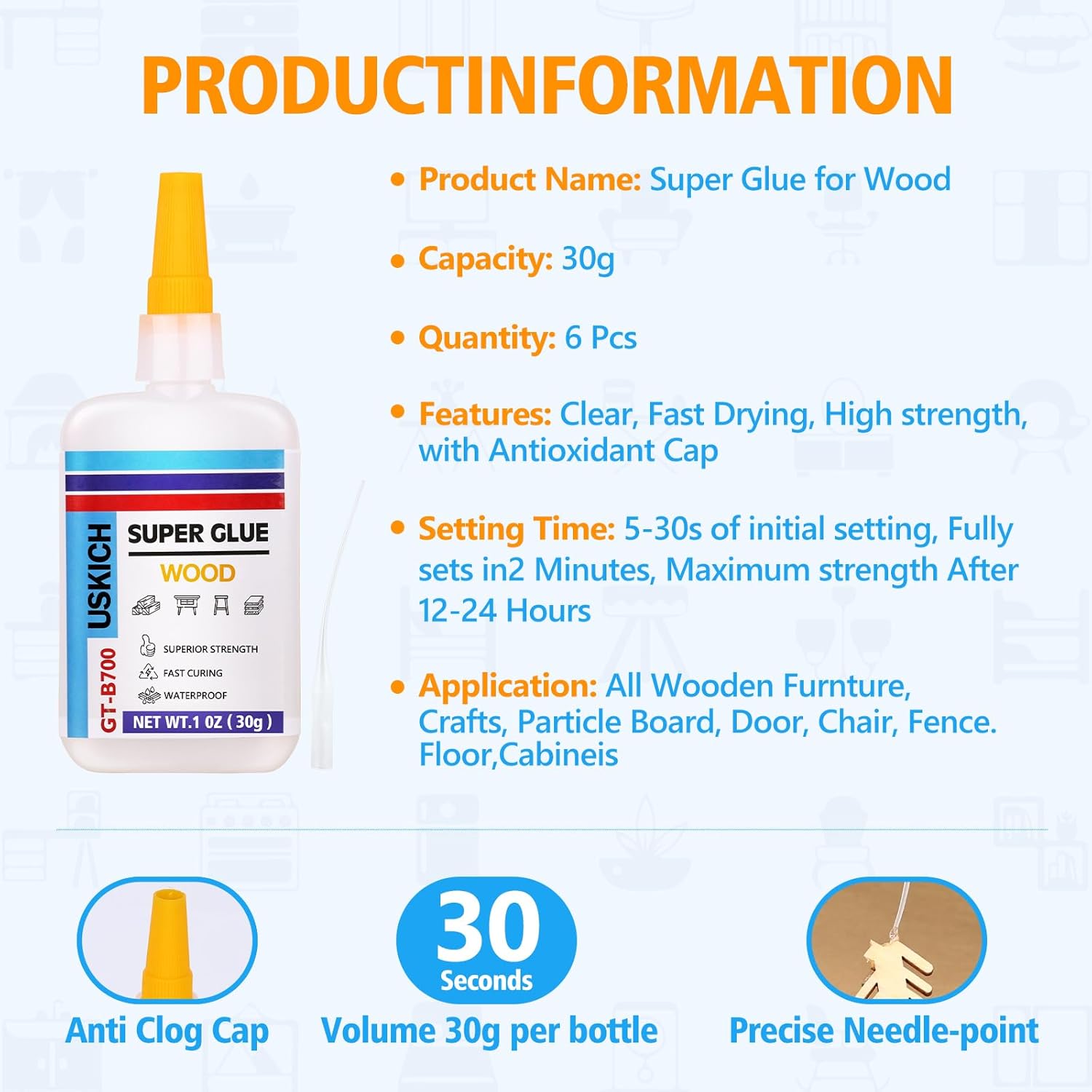 - ⭐Great Value Package: When you purchase USKICH Super Glue, You will receive 6 x 1 fl oz of Super CA Glue, 6 extra applicator cap to prevent future clogging
