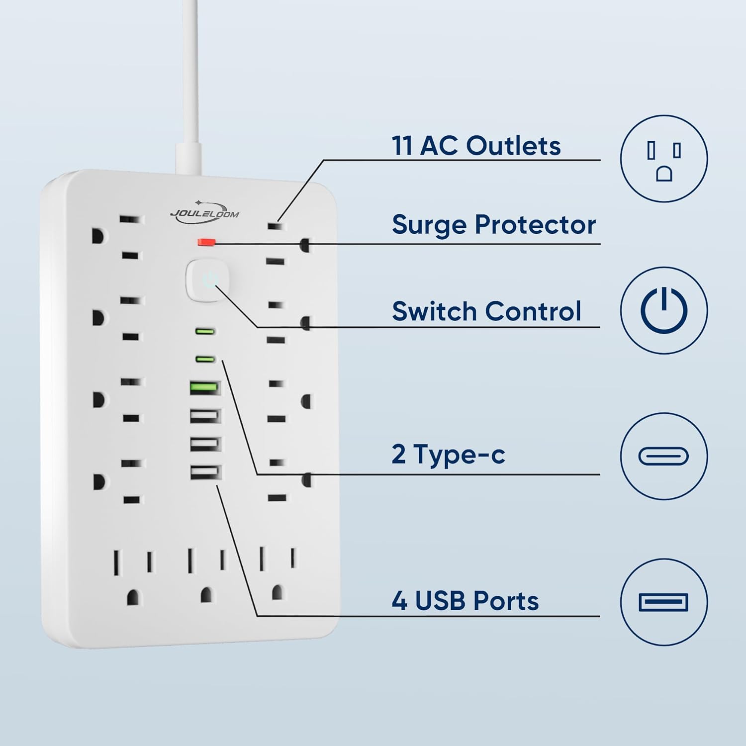 - ✅【More Thoughtfully For Use】With 4 centrally positioned USB ports & 2 USB-C ports, alongside 11 AC outlets strategically placed around the edges. This scientific configuration ensures optimal utilization of each socket, accommodating a wide array of devices seamlessly.