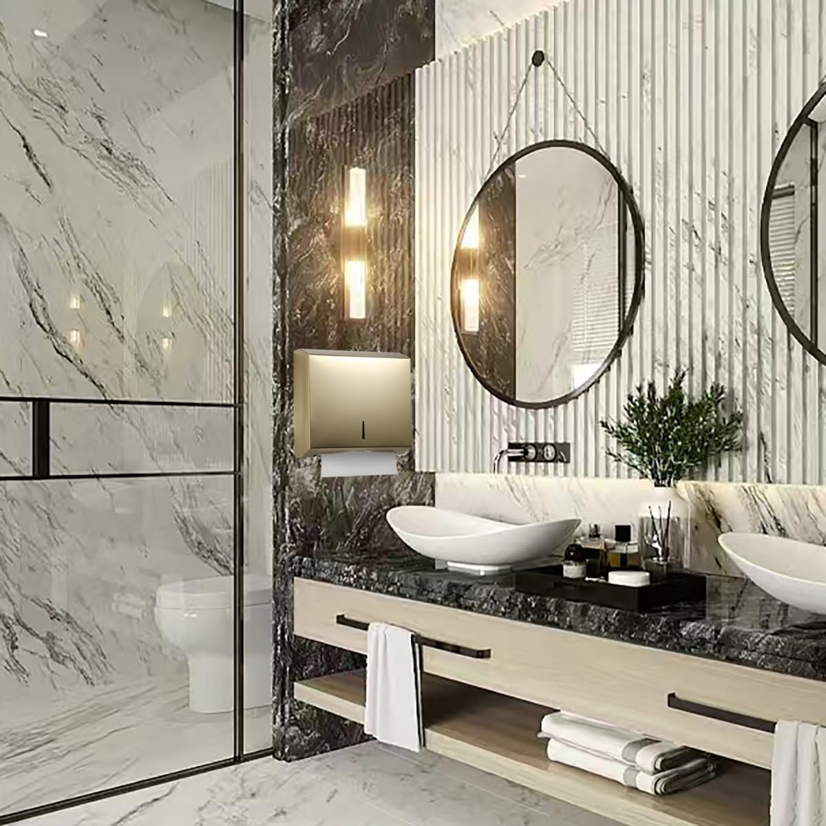 - 【Brushed Stainless Steel】 Made of 304-grade stainless steel, the paper towel dispenser is durable, easy to clean, and rust-proof. The brushed finish process gives it a sleek, modern look that will instantly elevate any bathroom. The polished edges and corners ensure that both hands and tissues are protected from any scratches.