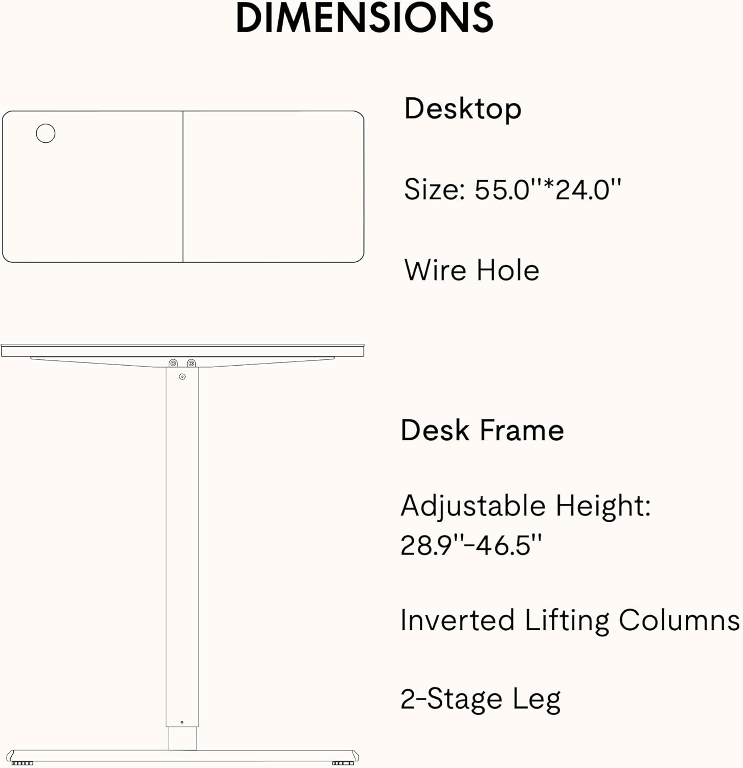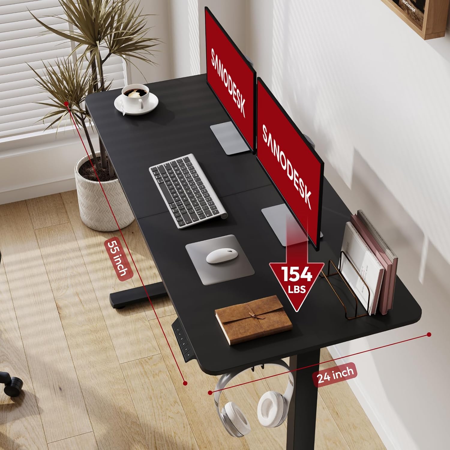- Ergonomic Workspace: The spacious 55” x 24” adjustable desktop offers a roomy setup that promotes an ergonomic workspace.