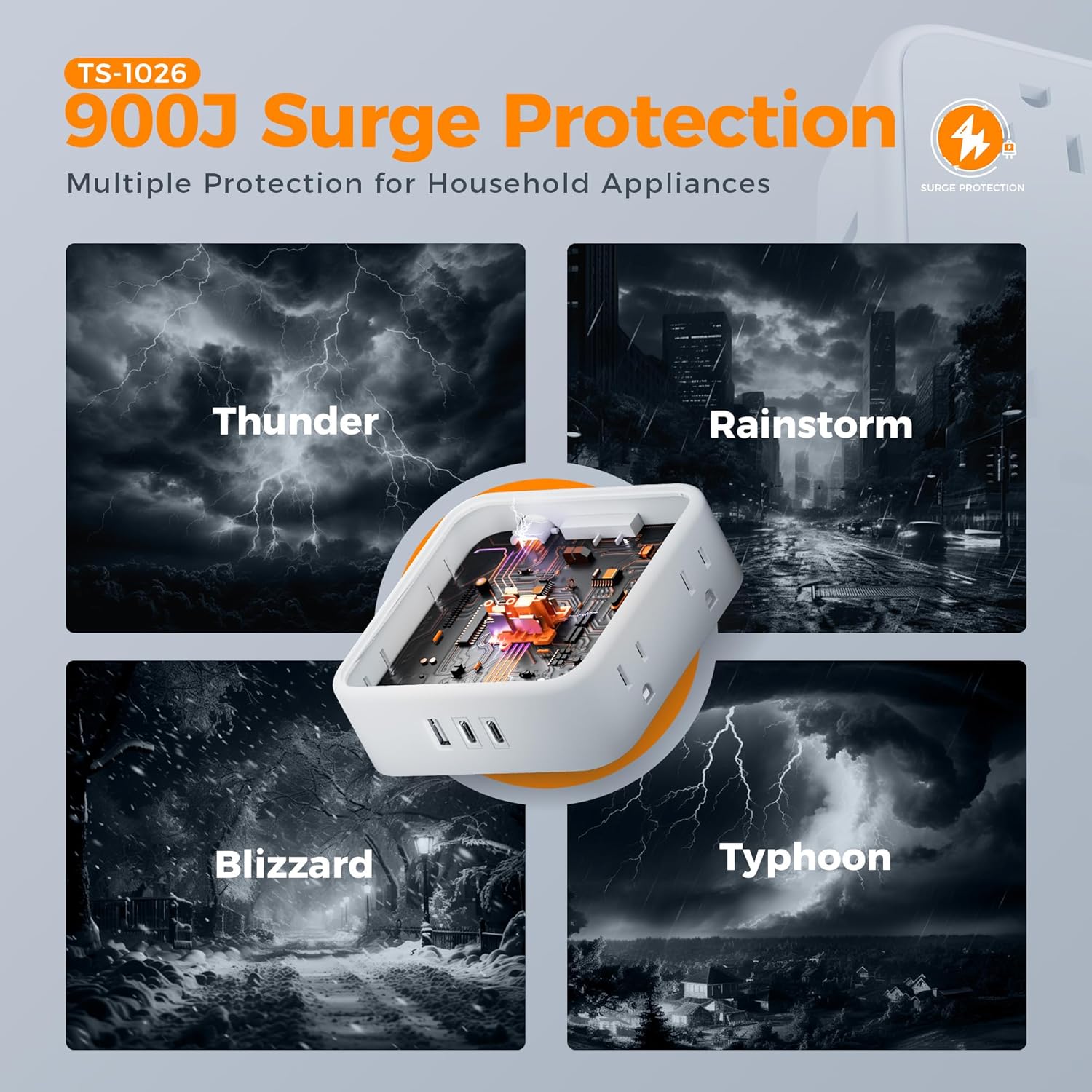 - Surge Protector Outlet: This surge protector with usb ports protects your devices, such as computers and other electrical appliances, from power surges and spikes; Outlet extender surge protector with 900J provides you with a safe and reliable charging environment