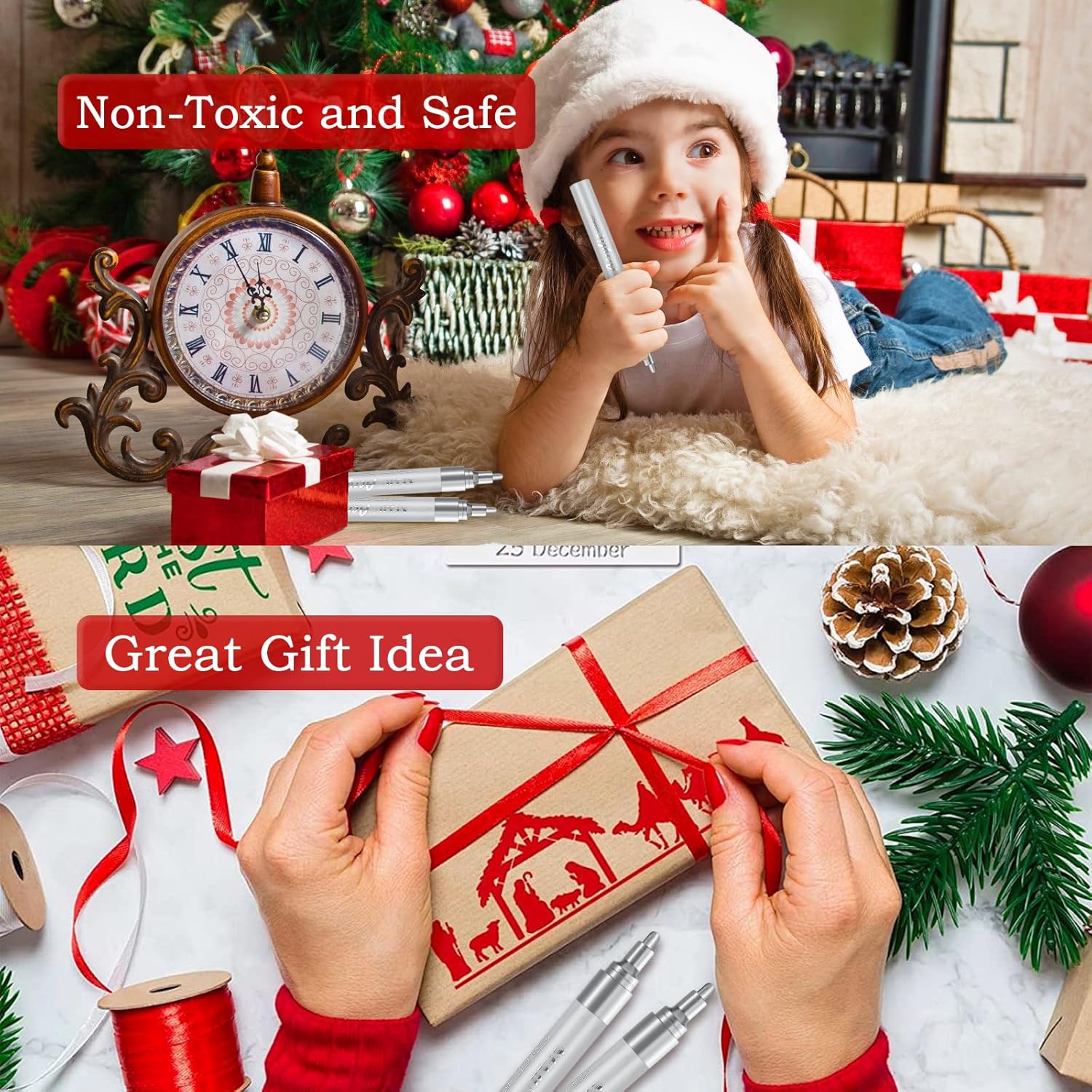 SFAIH Silver Paint Markers Pens - 4 Pack 2-3MM Medium Tip Metallic Acrylic Markers For Holiday Decor, Gift Wrapping, Party Posters, DIY Craft Projects