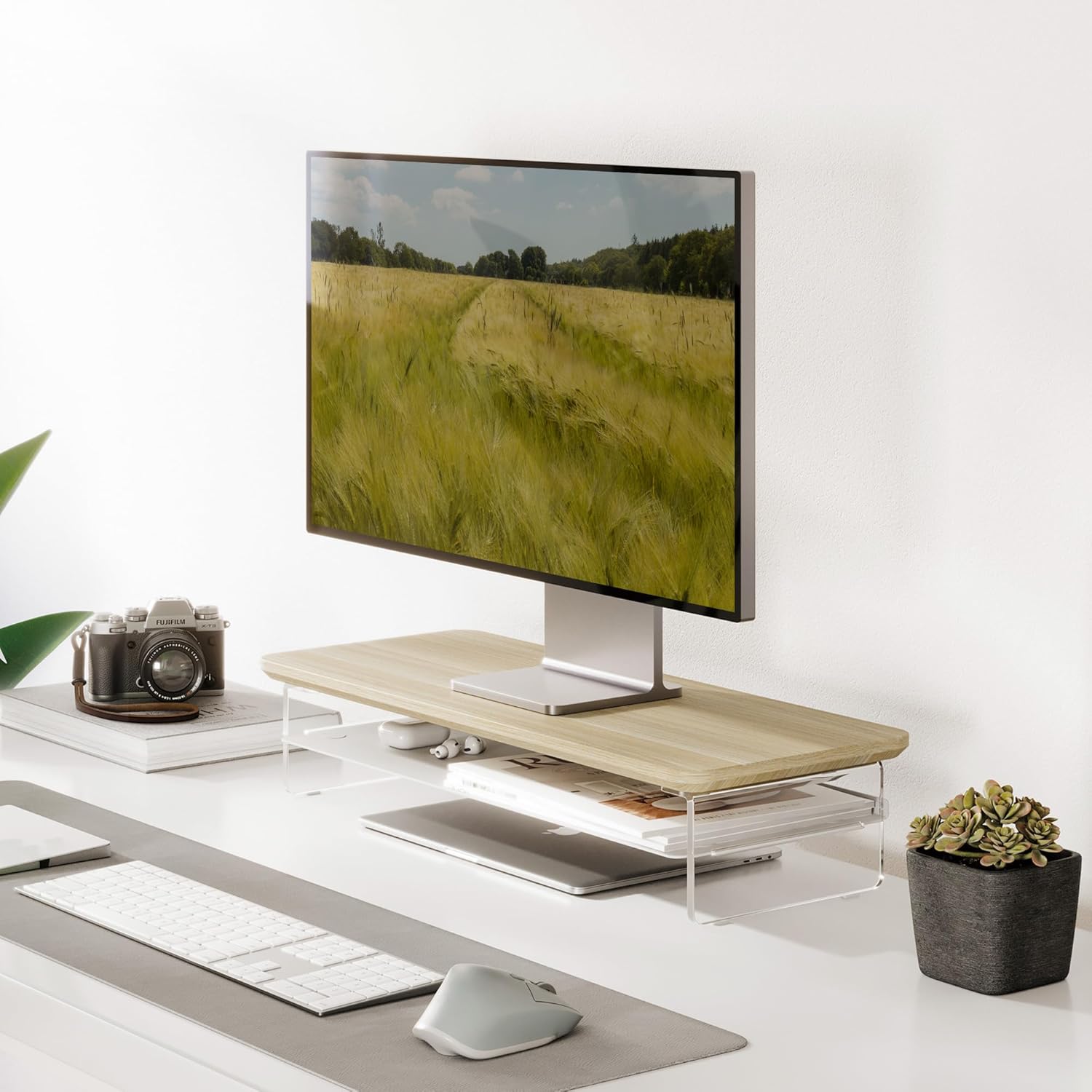 - 【Protect Your Cervical Spine & Eyes】: Acrylic monitor stand can raise your desktop by 4.7 inches to adjust to your eye level, reducing pressure on your neck and eyes.